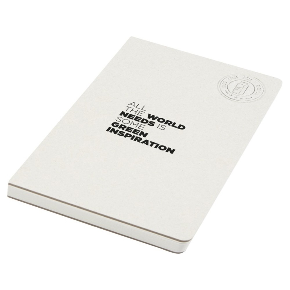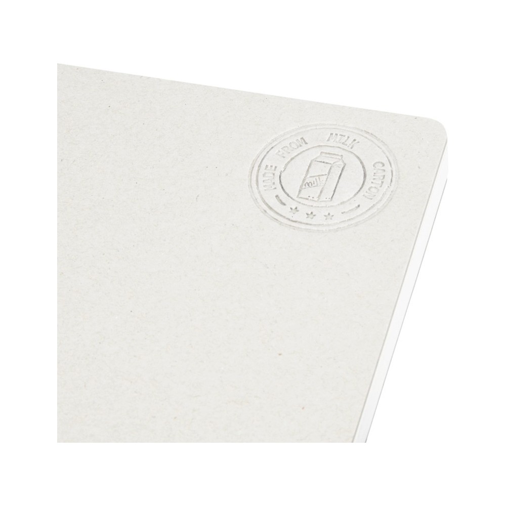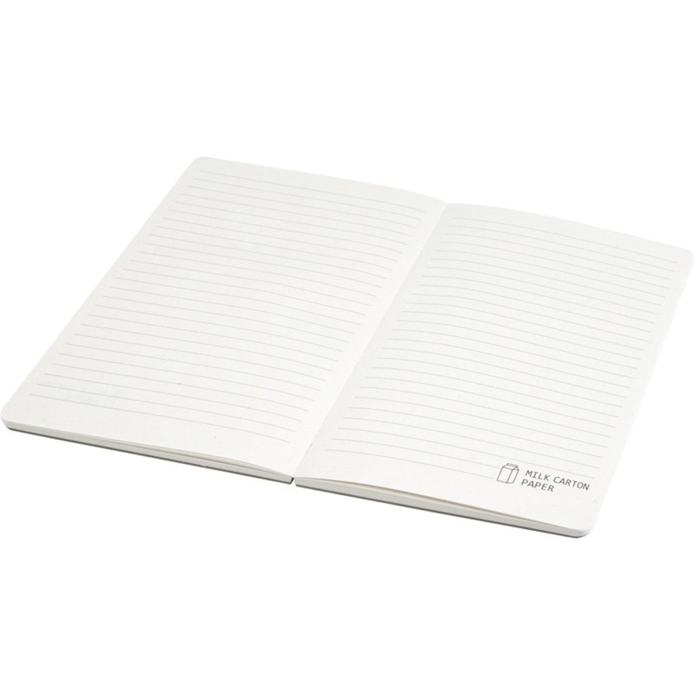 Мягкий блокнот для заметок форматом A5 с 80 линованными листами плотностью 80 г/м² из переработанных картонных коробок из-под молока (до 70%). Картонные коробки из-под молока собираются, сортируются, перерабатываются и превращаются в бумагу, таким образом действительно превращая мусор во что-то полезное.