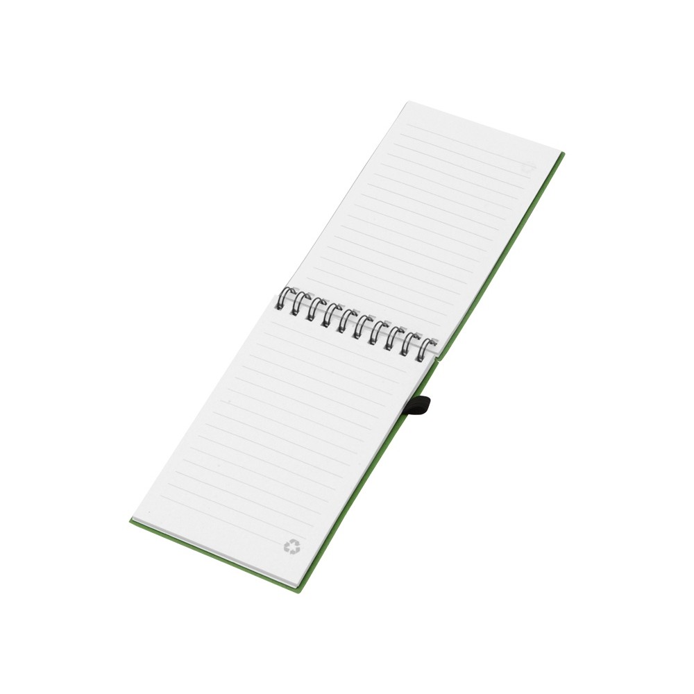 Комплектностьблокнот В7 9 х 14,5 х 1,3 см, ручка шариковая d1 х 14 см Крепление блокаспираль Материал товараблокнот- пластик, переработанная бумага, металл, ручка- пшеничное волокно, пластик