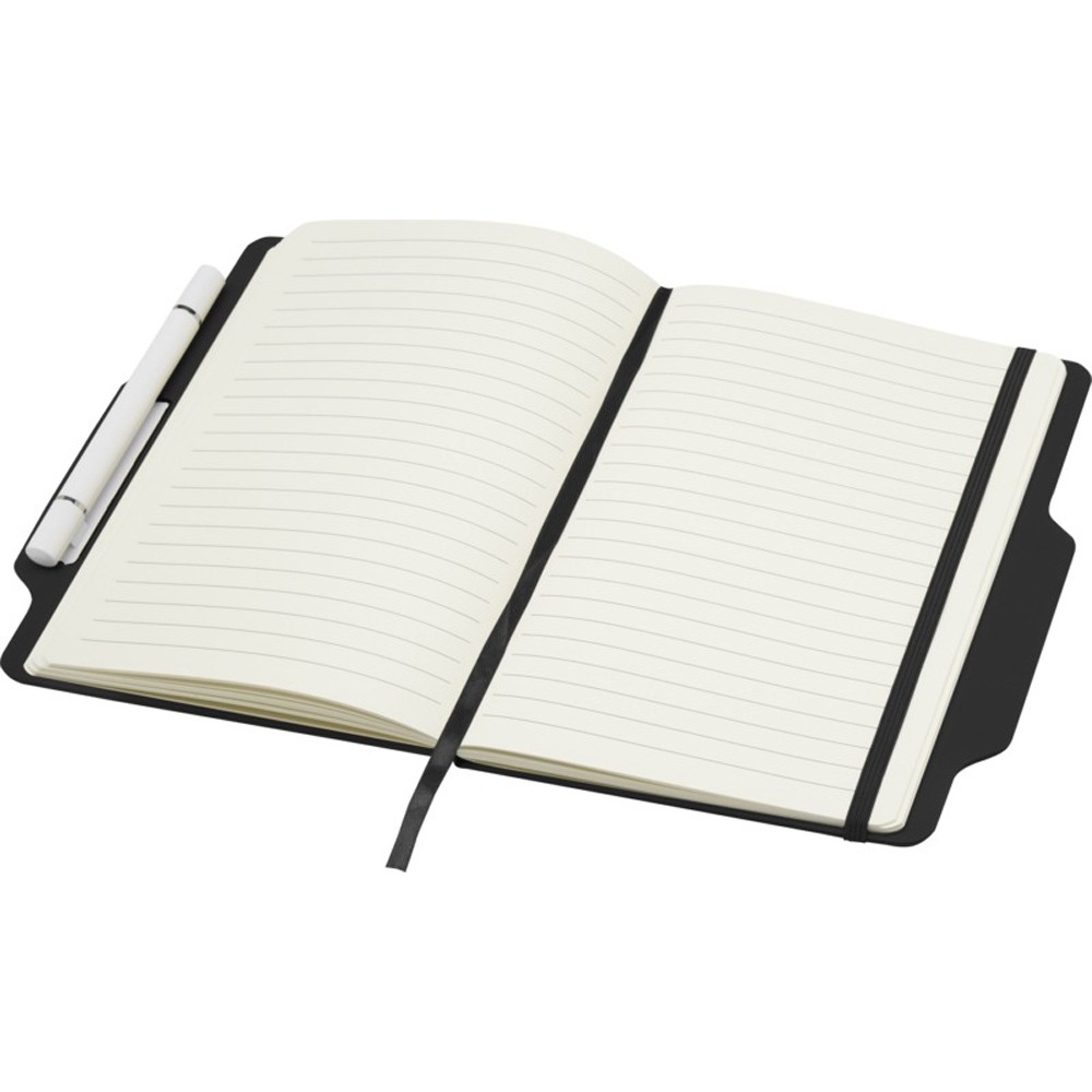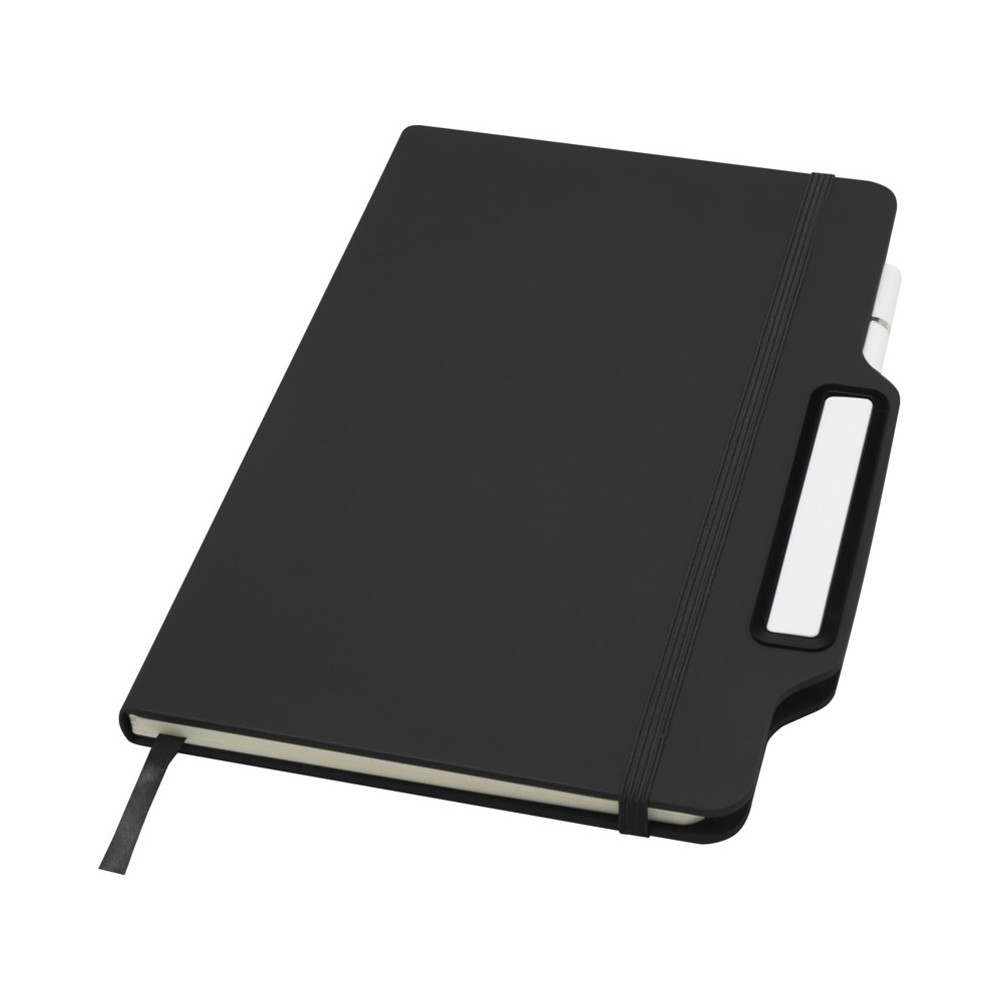 Блокнот Nexus формата A5 в твердой обложке с ручкой/карандашом, с 80 кремовыми линованными листами бумаги плотностью 70 г/м², с закругленными углами, эластичной застежкой и ленточным маркером. Ручка двухсторонняя: одна сторона — ручка с черными чернилами, а другая — карандаш. Длина непрерывной линии ручки: 1000 метров. Размер пера: 1,00 ММ. FSC certified paper, PU Plastic.