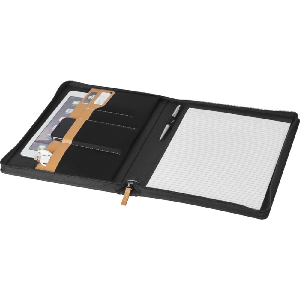 Папка- органайзер Nomumi, сертифицированная RCS, частично изготовлена из переработанного полиэстера, бывшего в употреблении, что делает данную папку более экологичным выбором, поскольку помогает сократить использование первичного сырья. Имеет застежку-молнию, петлю для ручки, карман-гармошку и 20 белых листов в линейку из переработанной бумаги плотностью 70 г/м² из экологически чистых источников. Ручка и другие аксессуары, представленные на фотографиях, в комплект поставки не входят. FSC certified paper. FSC Mix Credit P7 CU-COC-877277.