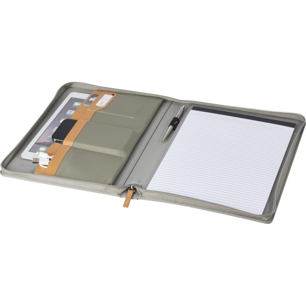 Папка- органайзер Nomumi, сертифицированная RCS, частично изготовлена из переработанного полиэстера, бывшего в употреблении, что делает данную папку более экологичным выбором, поскольку помогает сократить использование первичного сырья. Имеет застежку-молнию, петлю для ручки, карман-гармошку и 20 белых листов в линейку из переработанной бумаги плотностью 70 г/м² из экологически чистых источников. Ручка и другие аксессуары, представленные на фотографиях, в комплект поставки не входят. FSC certified paper. FSC Mix Credit P7 CU-COC-877277.