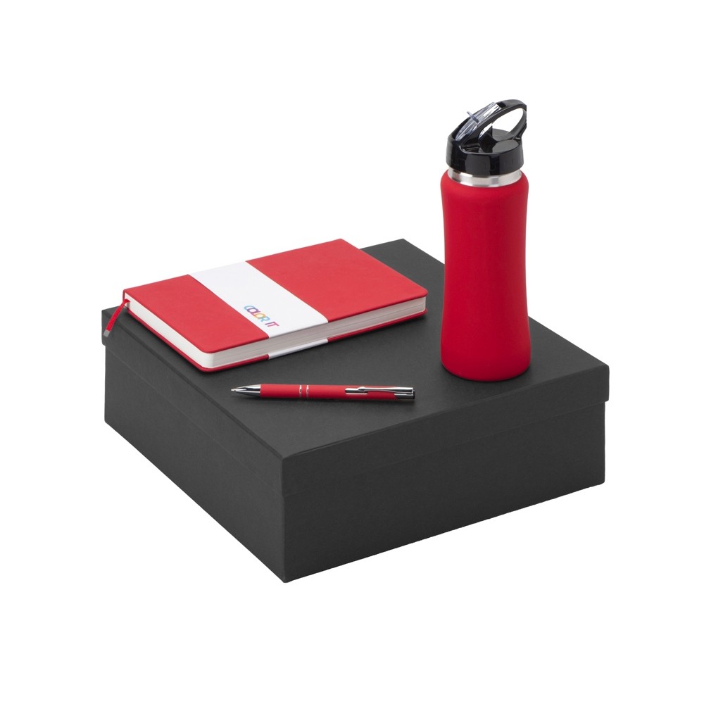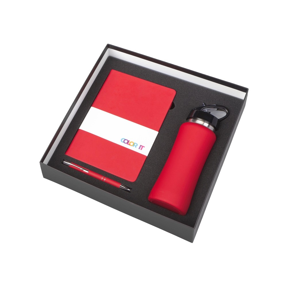 • Подарочный набор с блокнотом С2, металлической ручкой и бутылкой для воды, красный