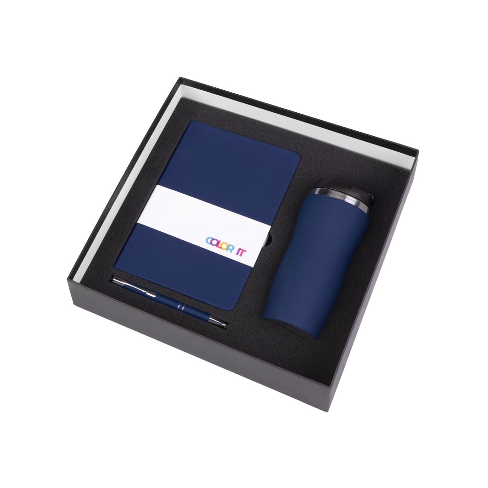 • Подарочный набор с блокнотом С2, металлической ручкой и термокружкой, темно-синий