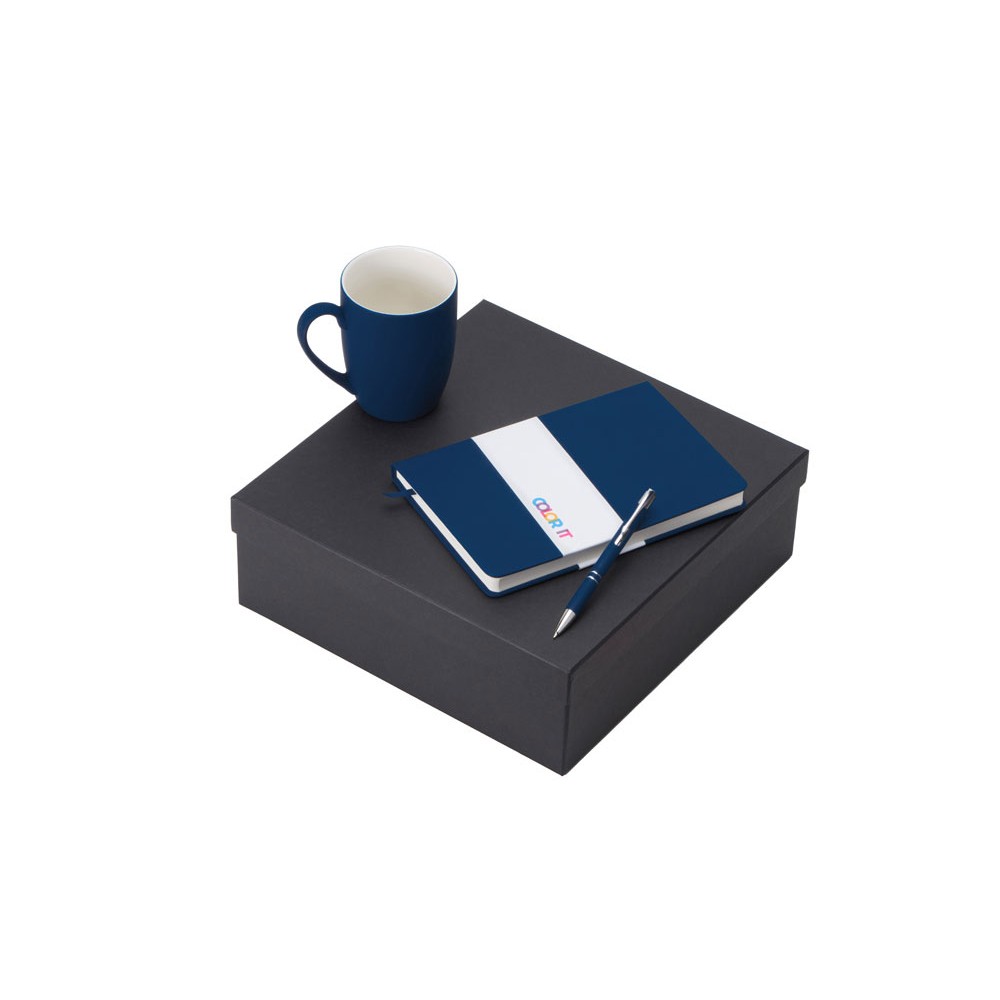 • Подарочный набор с блокнотом С3, металлической ручкой и кружкой, темно-синий