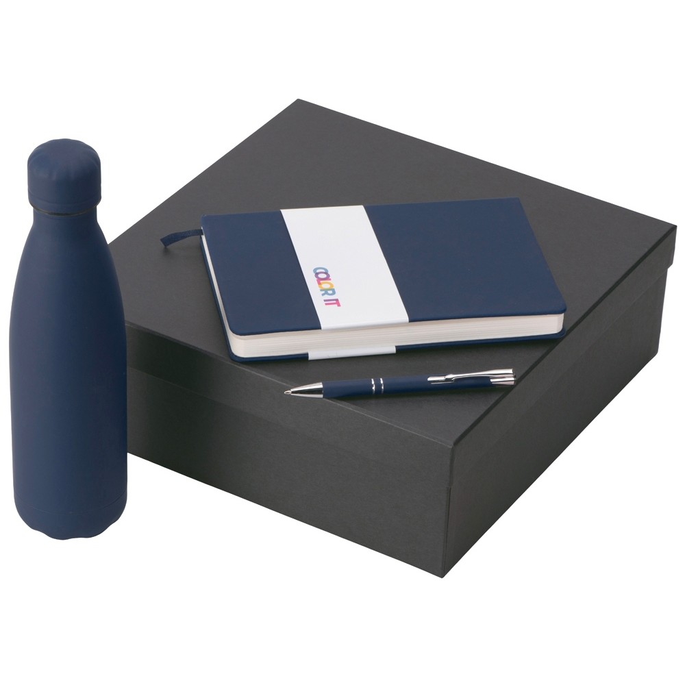 • Подарочный набор с блокнотом С3, металлической ручкой и термобутылкой, темно-синий
