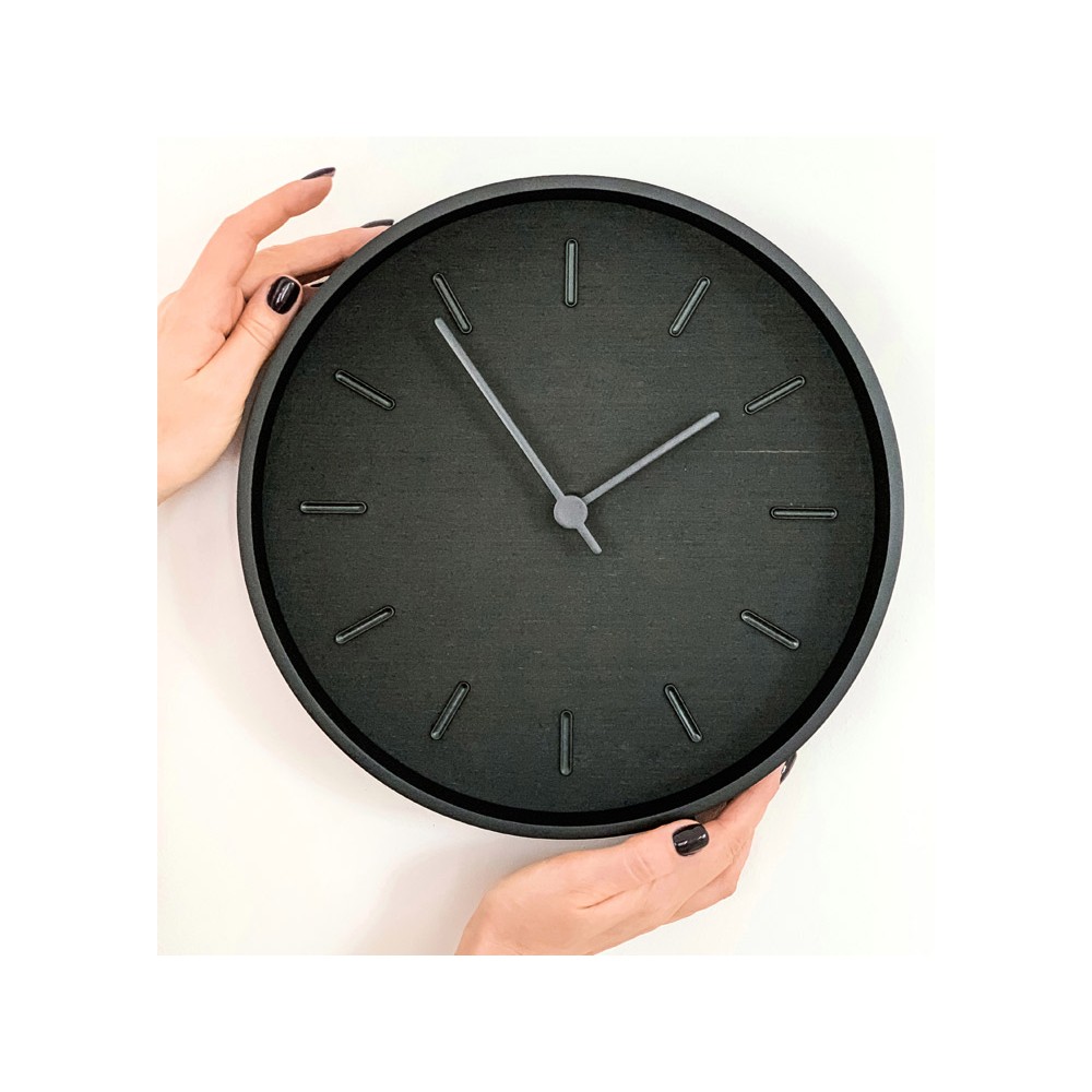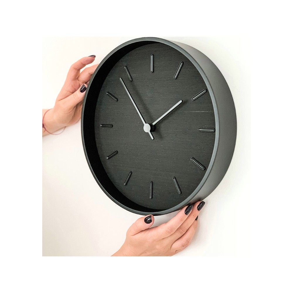 Beam - это современные настенные часы из натурального шпона с часовыми метками в черном цвете. Данную модель отличает стильный total black в деревянном исполнении: черный циферблат сделан из шпона венге и дополнен черными деталями: обод, стрелки и часовые метки.
