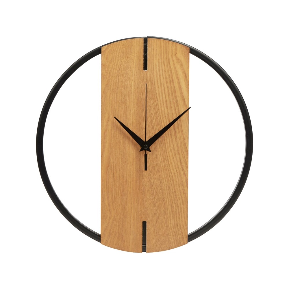 Деревянные часы с металлическим ободом, диаметр 30 см, "Time Wheel", натуральный/черный