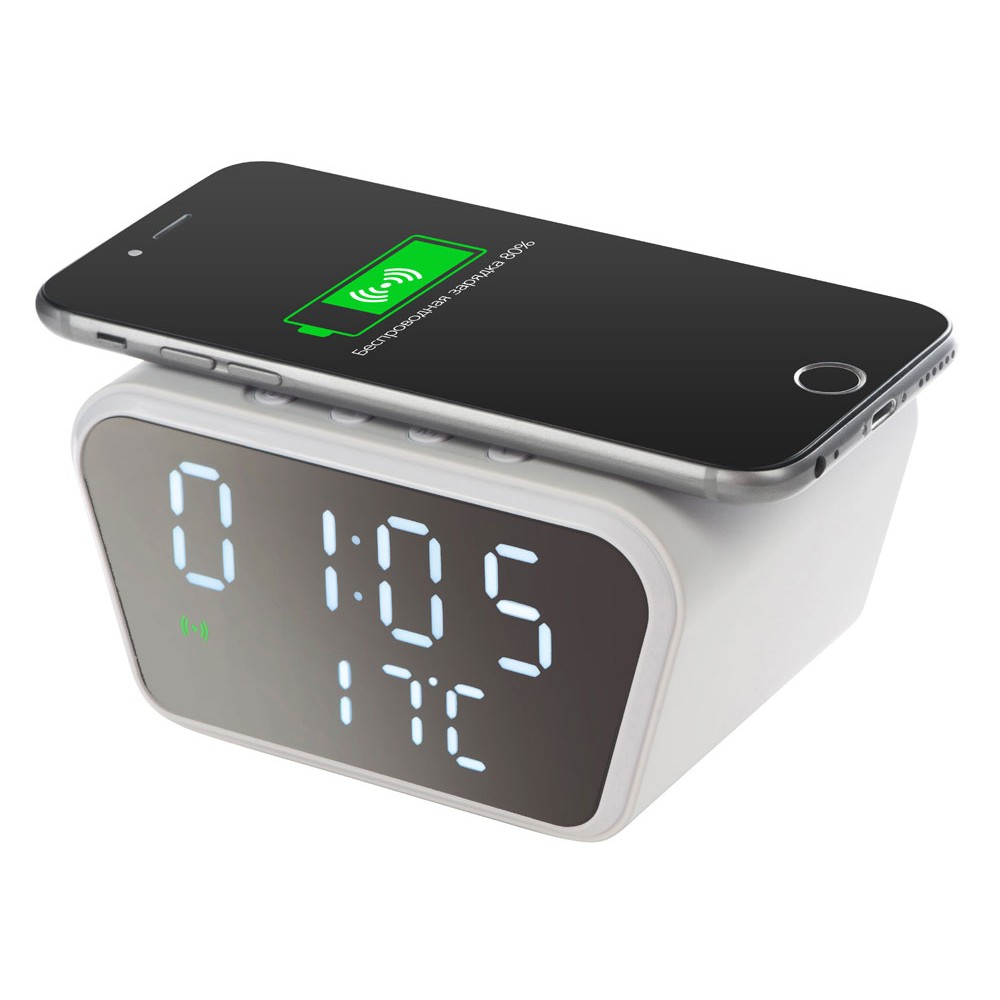 Настольные часы с функцией беспроводной зарядки "Wake", 10 Вт