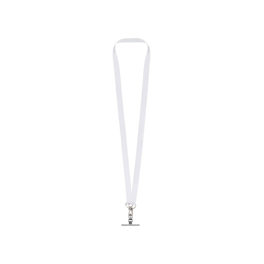 На складе Код товара: 828817 Ланъярд 2 см под сублимацию с 2-мя трендовыми карабинами и узким держателем для телефона из ПЭ, серебристый