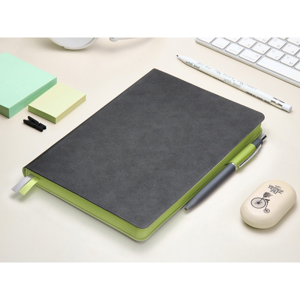 Технические характеристики Ежедневник А5 датированный "Boston" 2027, серый с салатовым обрезом