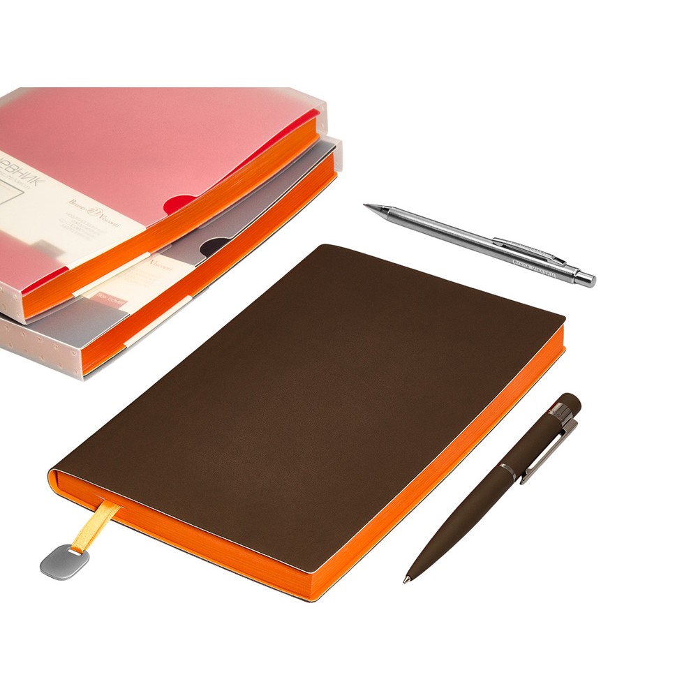 Недатированный ежедневник «Mercury» от бренда Bruno Visconti - это качественный корпоративный подарок по выгодной цене, произведенный специально под персонализацию. Представлен в современном формате А5. Обложка ежедневника выполнена из современного переплетного материала с двойной закладкой с шильдом. Цветной край блока, а также отделка листов цветными деталями - это переплетение технологических новинок и оригинальных дизайнерских решений.