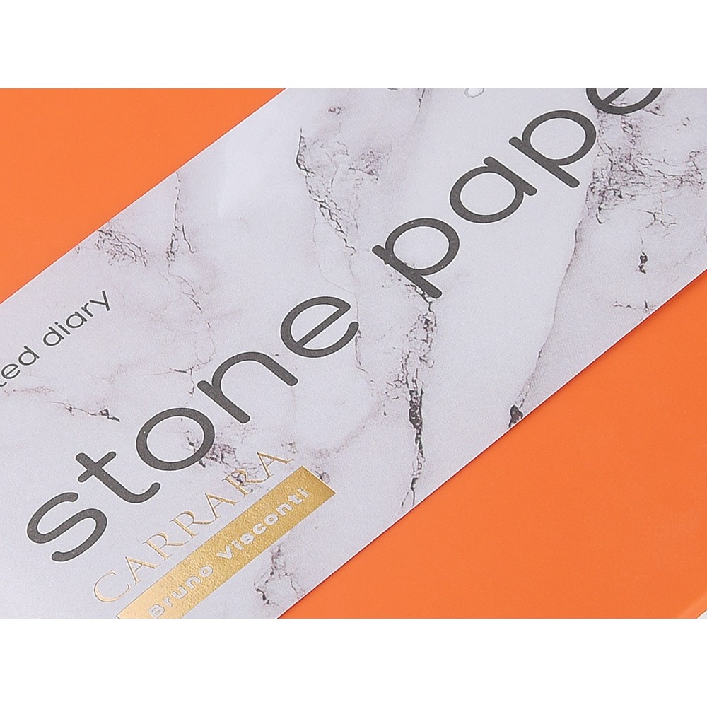 Уникальность недатированного ежедневника Carrara от Bruno Visconti — в его блоке. Он изготовлен из каменной бумаги плотностью 144 г/кв.м, отличающейся особой гладкостью и повышенной прочностью. Она не боится воды и пролитого кофе, достаточно просто протереть сухой салфеткой.
