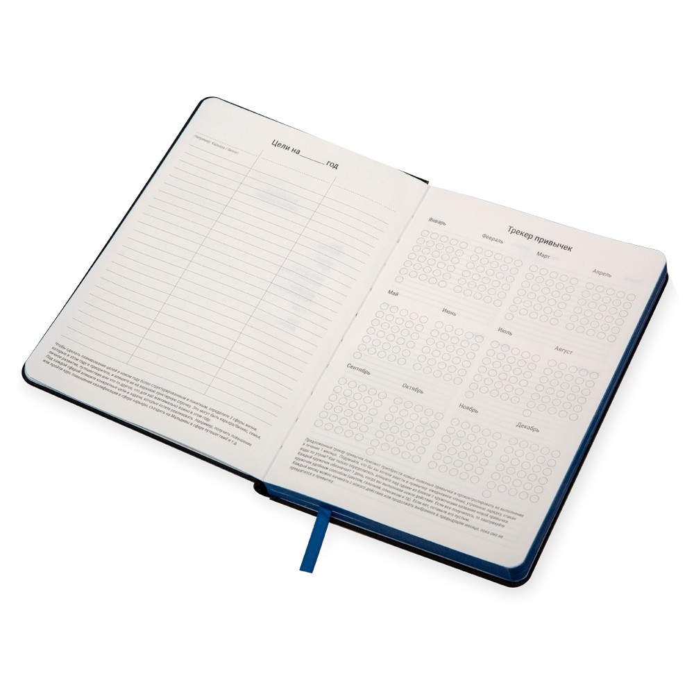 В блокноте 256 страниц, даты не указаны, что позволяет начать вести блокнот в любой удобный день года.