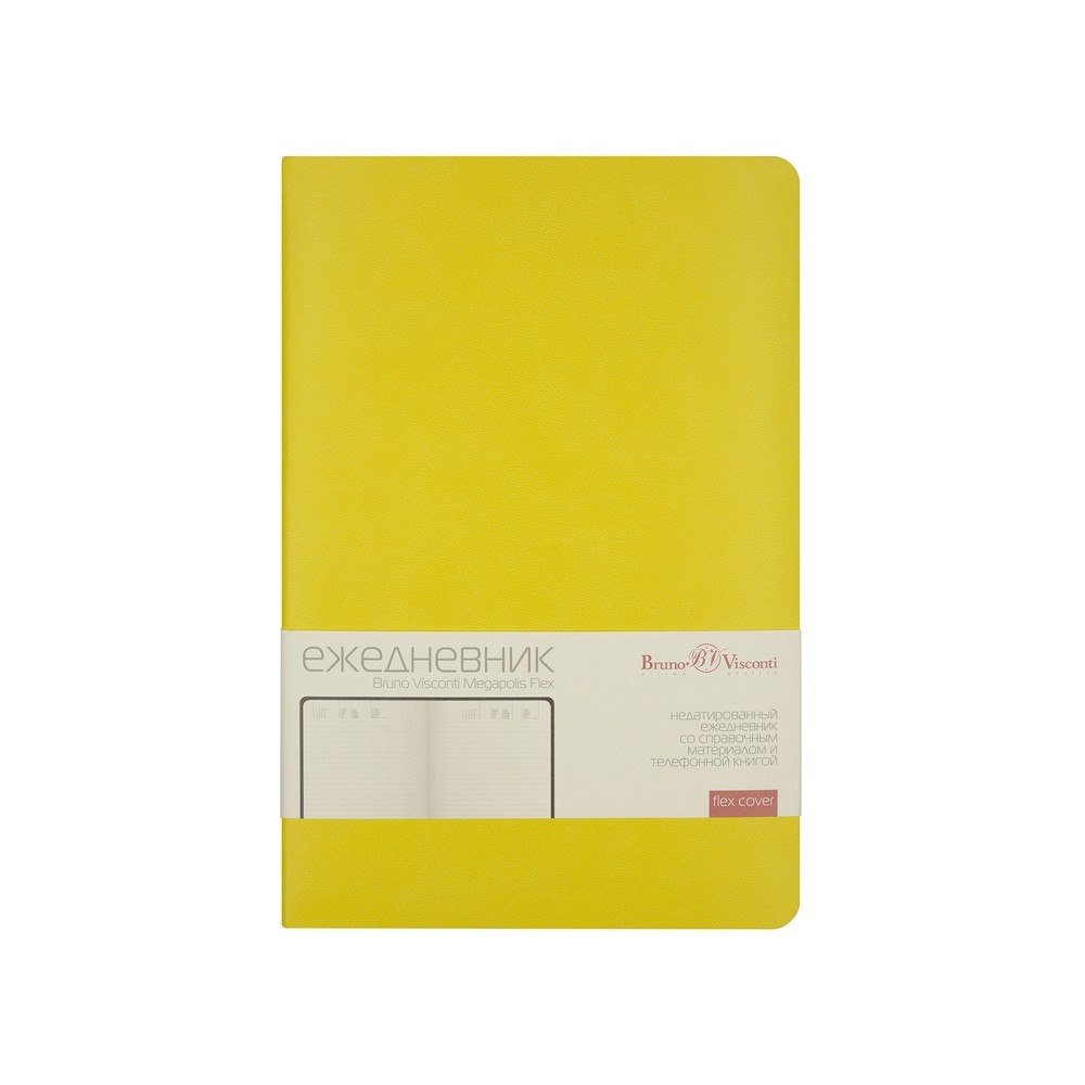 В ежедневнике «Megapolis Flex» есть полезная справочная информация и телефонная книга, а также страницы для записи идей, мыслей и составления рабочих планов. Для изготовления страниц используется качественный бежевый офсет повышенной плотности (70 г/кв м). Блок не привязан к конкретным датам – они указываются в выделенном поле вверху страницы. Тонированная бумага не дает глазам утомиться даже при длительной работе.