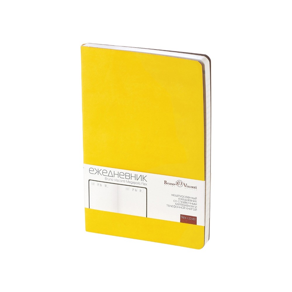 Недатированный ежедневник «Megapolis Flex» от бренда Bruno Visconti - это качественный корпоративный подарок по выгодной цене, произведенный специально под персонализацию. Представлен в универсальном формате А5 и состоит из 272 страниц. Элегантная закругленная flex обложка из гладкого кожзама имеет гибкую конструкцию и приятна на ощупь. А интегральный переплет позволяет сэкономить место в деловой сумке или портфеле – ежедневник можно просто свернуть в трубку или согнуть пополам.