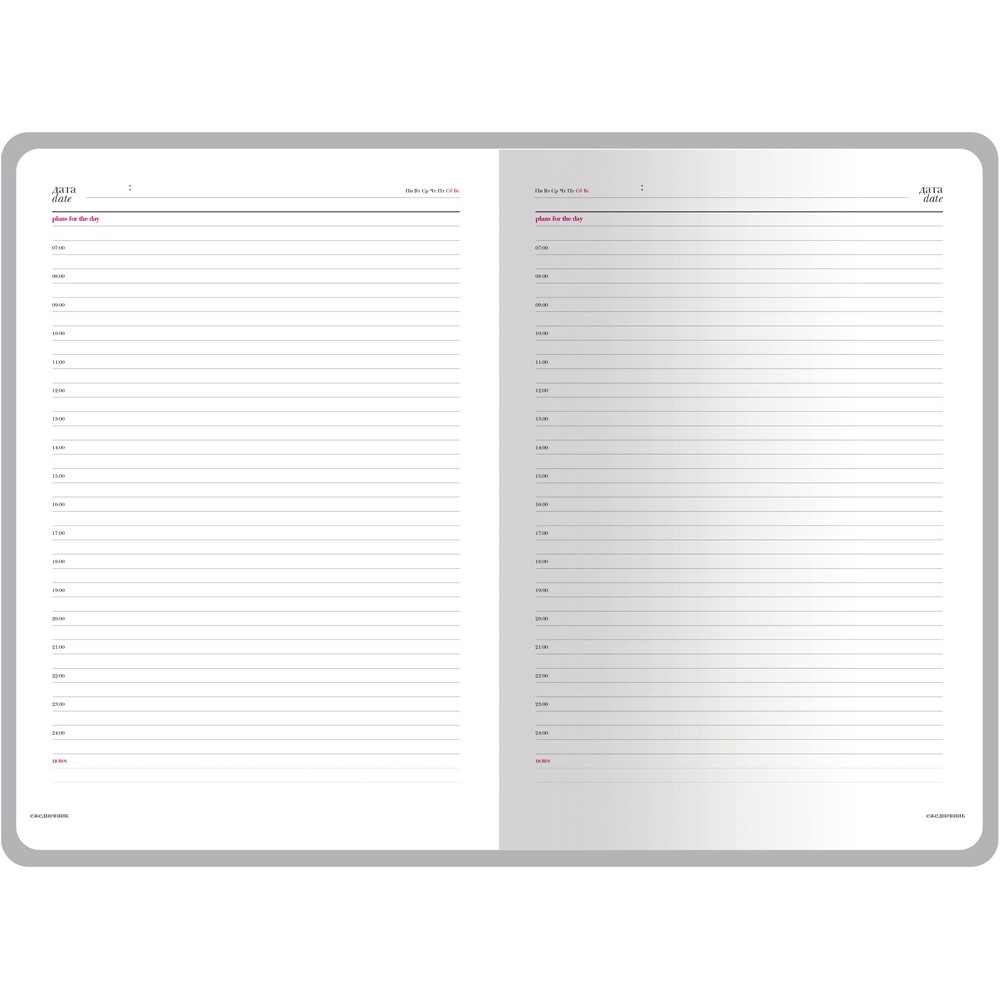 В ежедневнике «Sidney Nebraska» есть полезная справочная информация и телефонная книга на 18 листов, а также 272 страницы для записи идей, мыслей и составления рабочих планов. Специально для ежедневных офисных дел в ежедневнике используется качественная белая бумага плотностью 70 г/м². Разметка блока с указанием времени позволяет планировать дела с точностью до 1 часа.