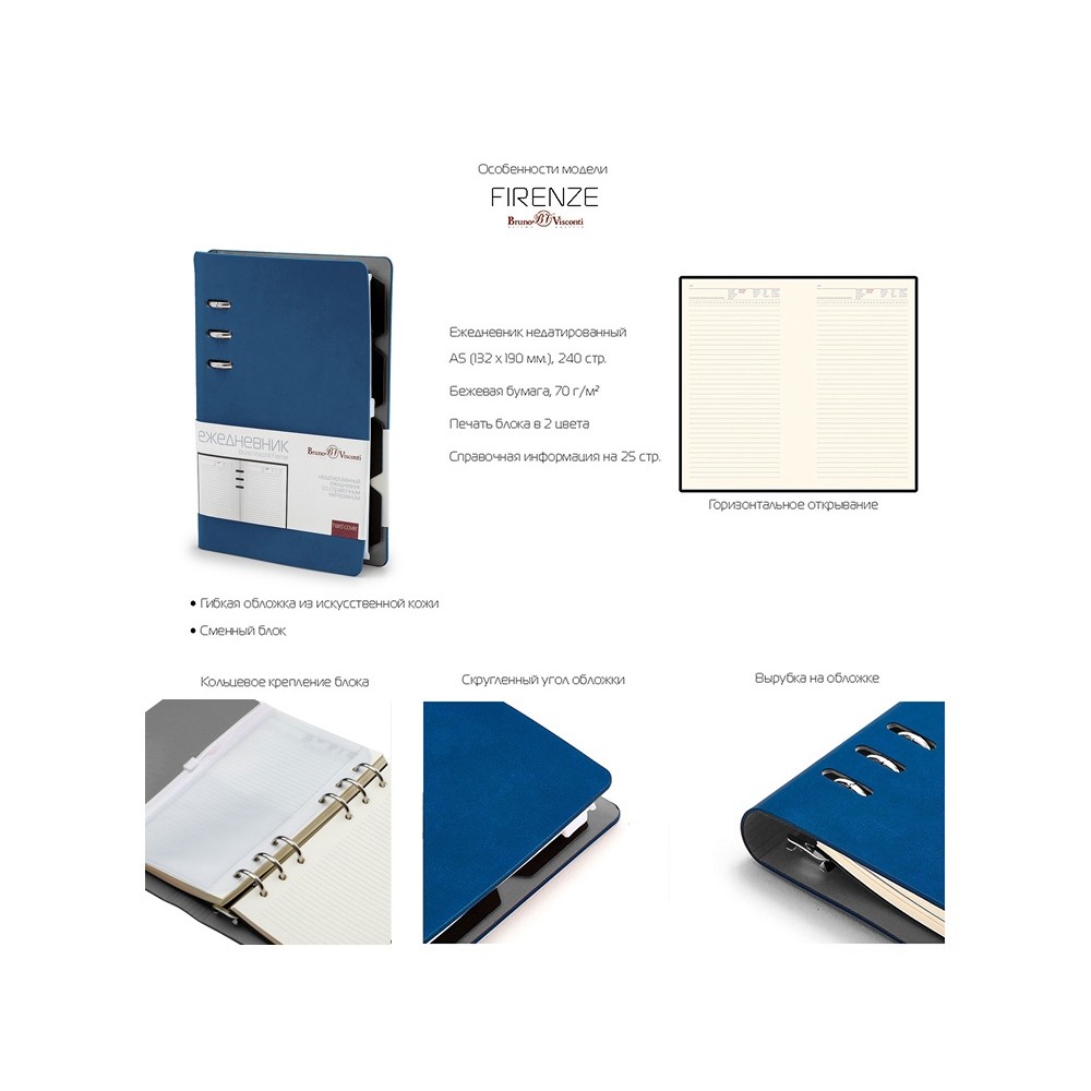 Технические характеристики Ежедневник недатированный А5 «Firenze», синий