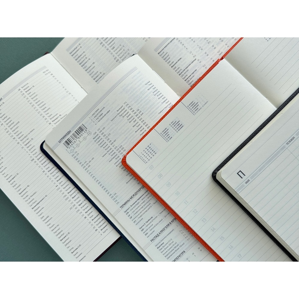 Твердая обложка из высококачественной экокожи максимально повторяет фактуру натуральной кожи. Скругленные углы блока и обложки позволяют уберечь листы от замятий и придают ежедневнику утонченности и благородства. Для удобства навигации предусмотрена закладка-ляссе в цвет обложки.