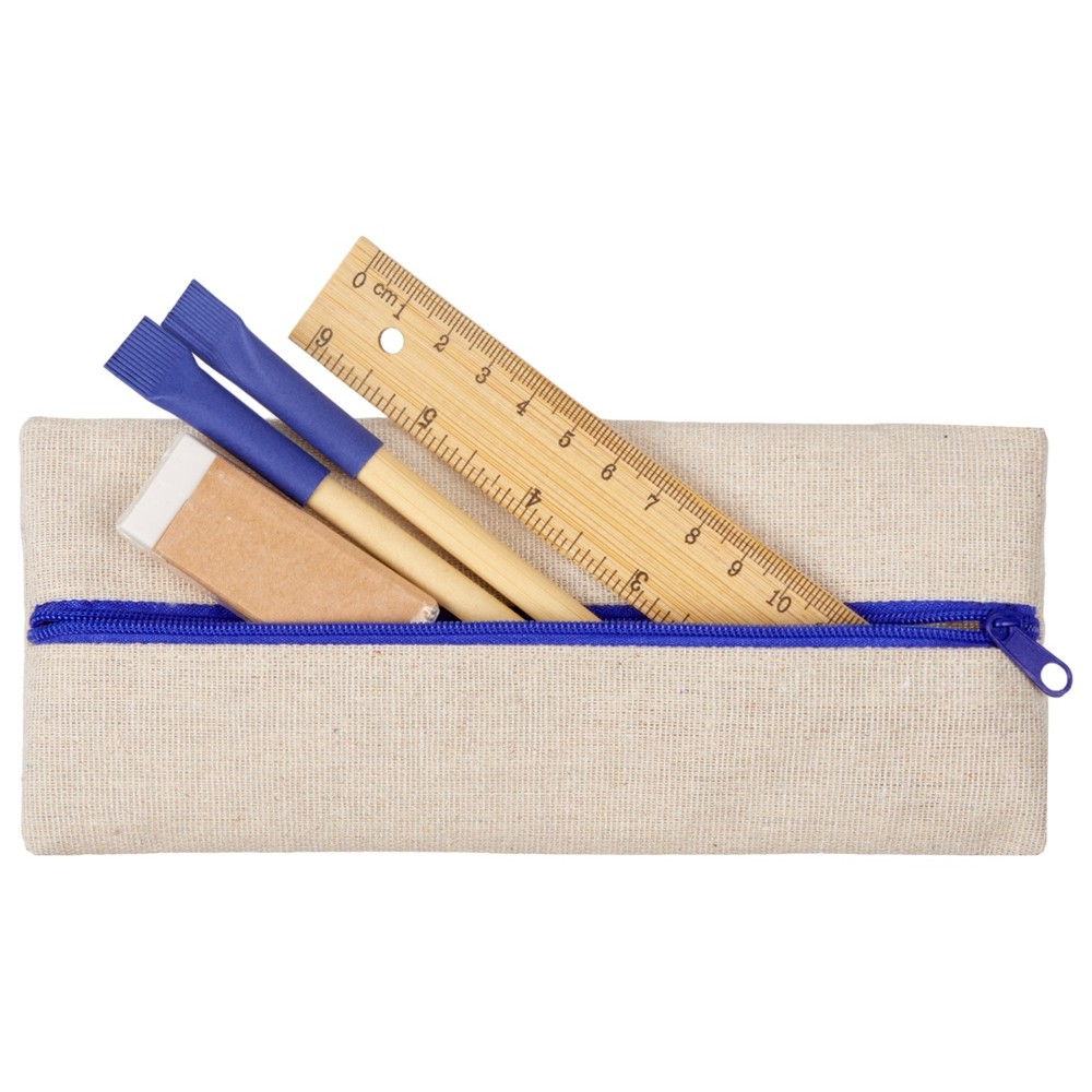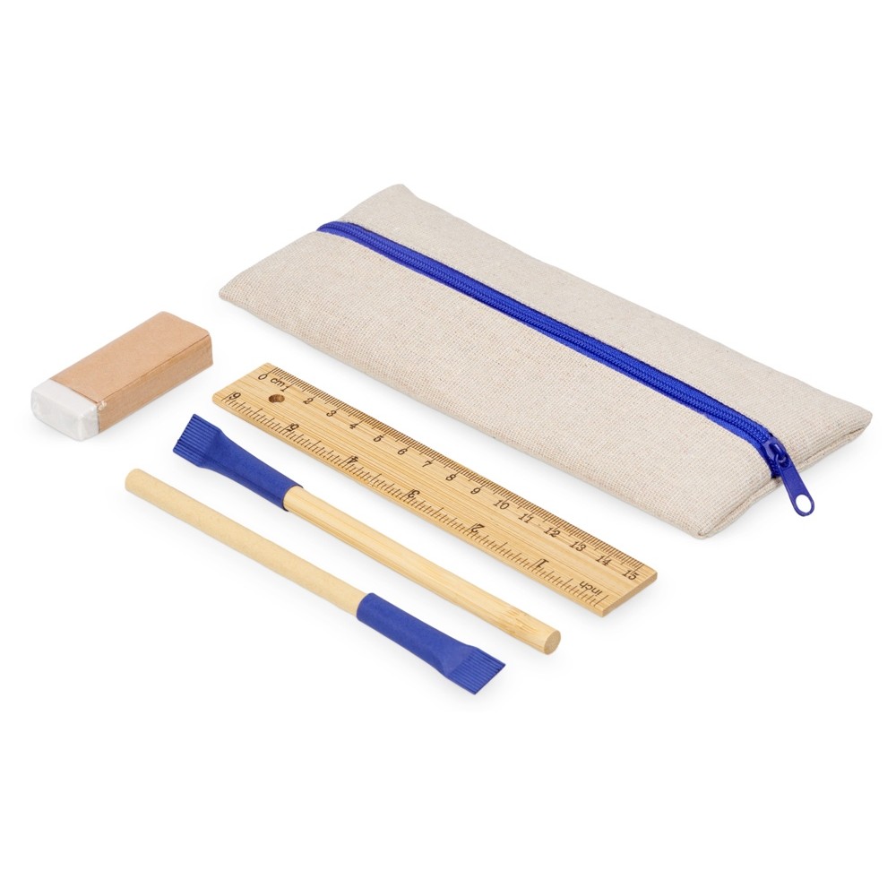 Удобный набор канцелярии со всем необходимым. В наборе: пенал на молнии, ручка Recycled, вечный карандаш в бамбуковом корпусе с колпачком из переработанной бумаги, ластик и бамбуковая линейка. Чтобы все самые необходимые пишущие принадлежности были под рукой.