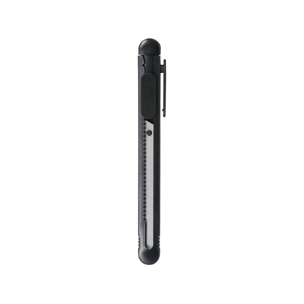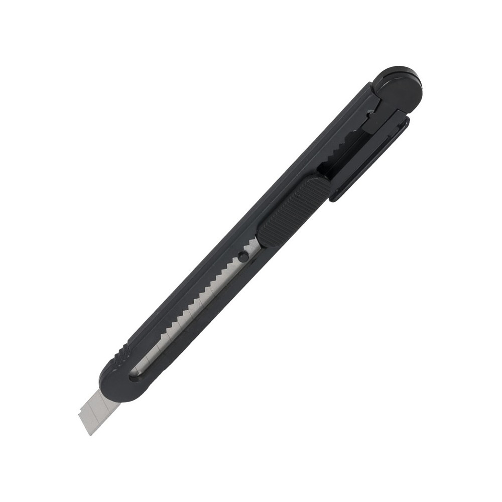 Универсальный нож с выдвижным сменным лезвием 80x9 мм, с 12 сегментами. Встроенный инструмент для замены лезвия и зажим для крепления к карману. ПС-пластик.