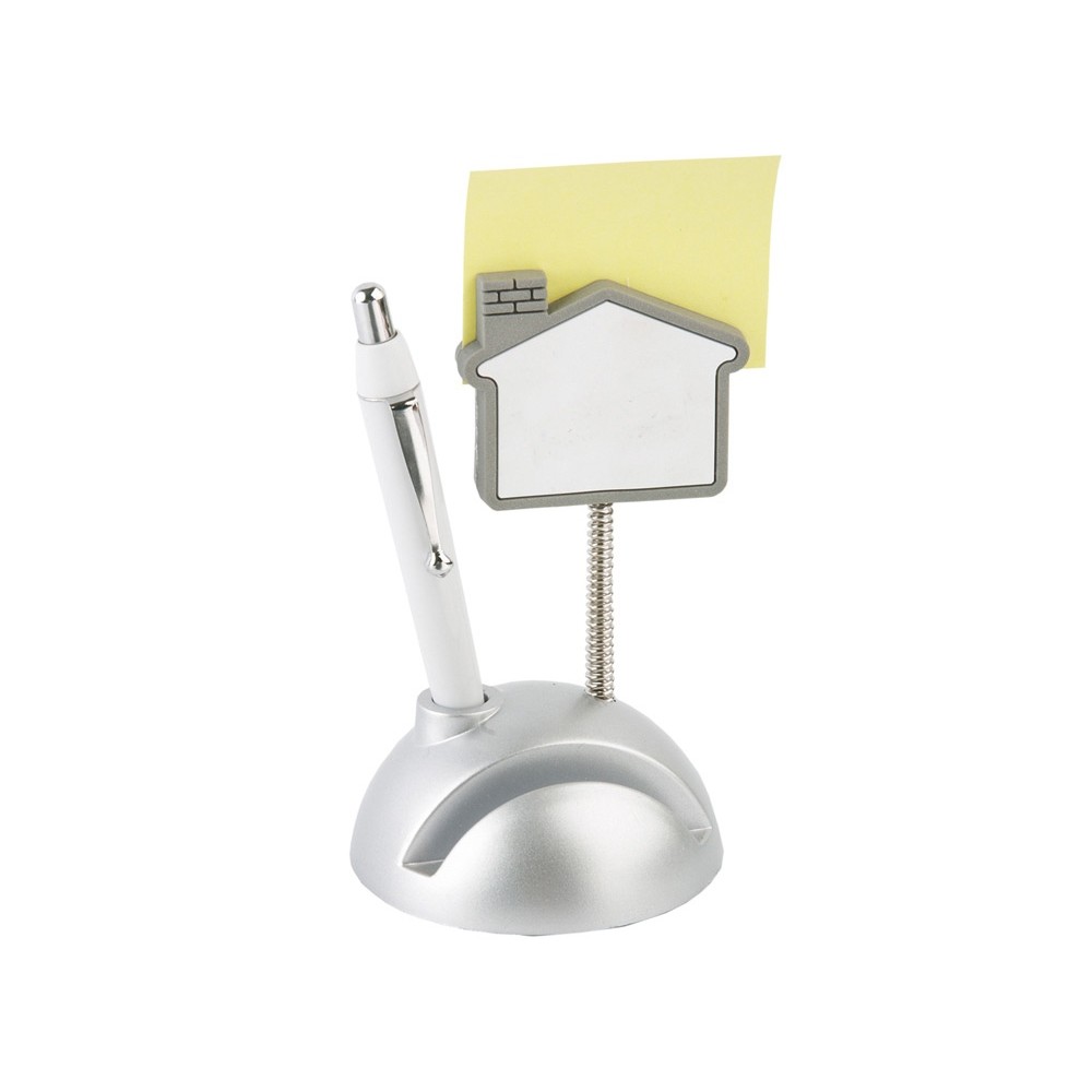 • Подставка для визиток и ручки с держателем для бумаги "Домик", серебристый/белый (Р)