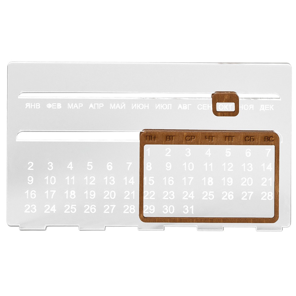 Вечный календарь Evermore 210х127 мм: фанера 3 мм, орг стекло 4 мм, упаковка в плотный крафт конверт