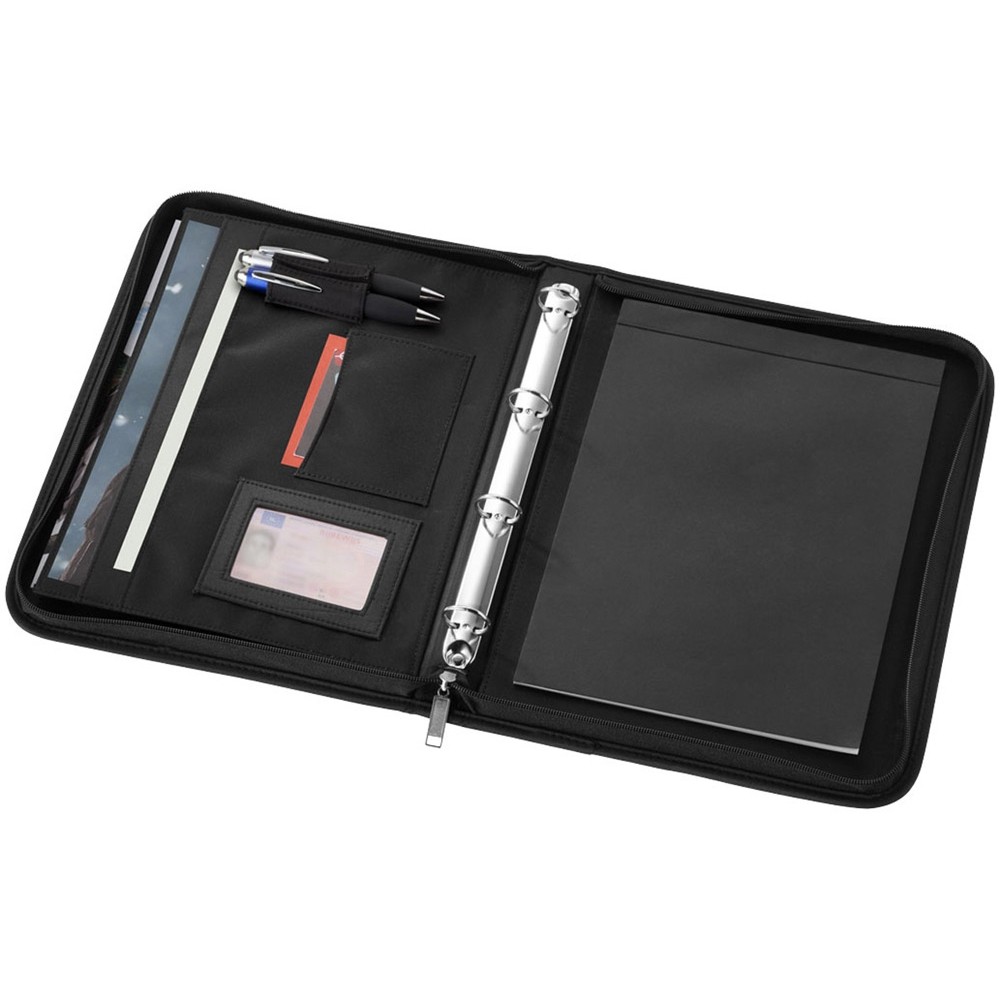 Папка Stanford A4 на молнии. Папка с застежкой-молнией, папкой-регистратором, карманами для документов и блокнотом с 20 страницами линованной бумаги. Ручка и принадлежности не включены. Микроволокно.