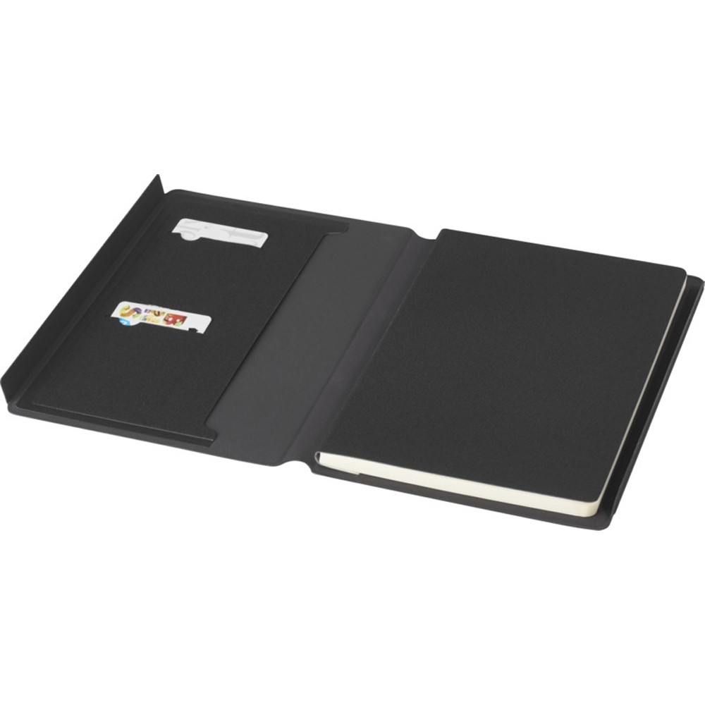 Папка-органайзер Notu, сертифицированная RCS, частично изготовлена из переработанного полиэстера, бывшего в употреблении, что делает данную папку-органайзер более экологичным выбором, поскольку помогает сократить использование первичного сырья. Имеет магнитную застежку, карман-гармошку и 64 листа в линейку кремового цвета из переработанной бумаги плотностью 80 г/м² из экологически чистых источников. FSC certified paper. FSC Mix Credit P7 CU-COC-877277.