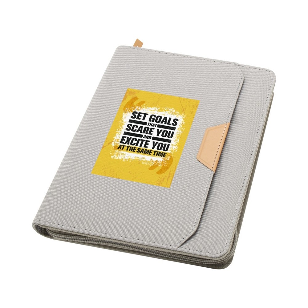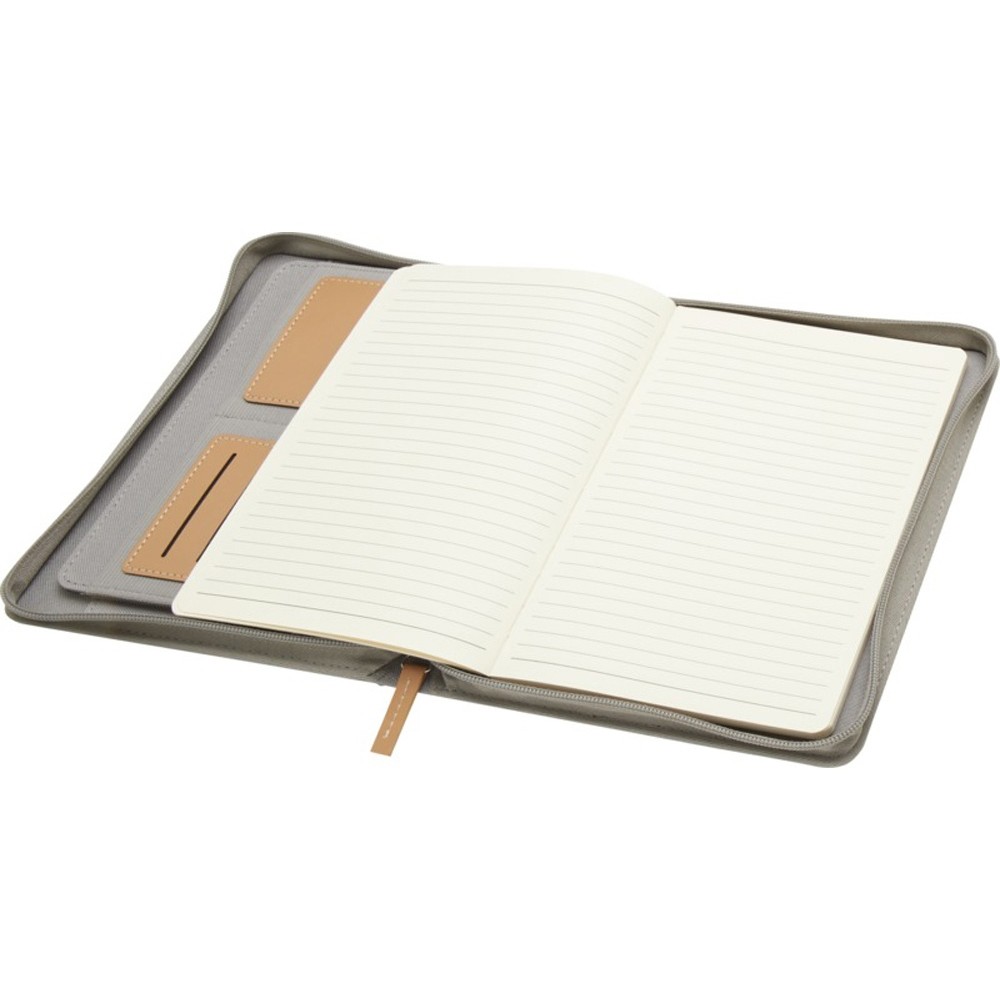 Папка Nomumi формата А5 с закругленными углами — удобный и необходимый предмет в офисе, изготовленный из переработанного пластика. Содержит 64 листа кремового цвета плотностью 80 г/м2, застежку-молнию, петлю для ручки и карман-гармошку. Переработанный PET пластик, бумага.