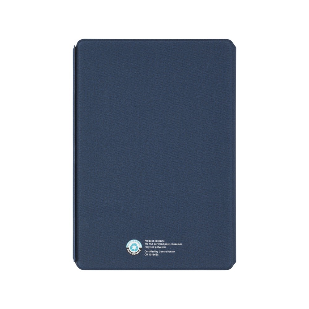 Папка-органайзер Notu, сертифицированная RCS, частично изготовлена из переработанного полиэстера, бывшего в употреблении, что делает данную папку-органайзер более экологичным выбором, поскольку помогает сократить использование первичного сырья. Имеет магнитную застежку, карман-гармошку и 64 листа в линейку кремового цвета из переработанной бумаги плотностью 80 г/м² из экологически чистых источников. FSC certified paper. FSC Mix Credit P7 CU-COC-877277.
