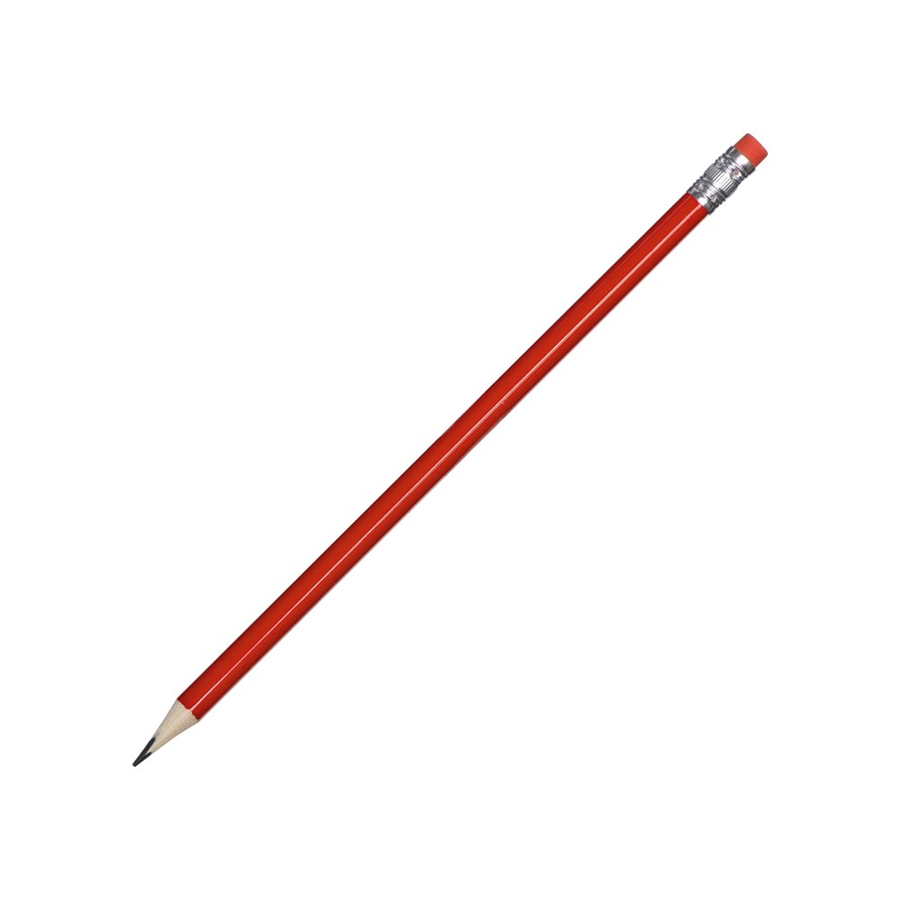 Трехгранный чернографитовый карандаш с ластиком будет очень полезным и недорогим подарком. Карандаш заточен.