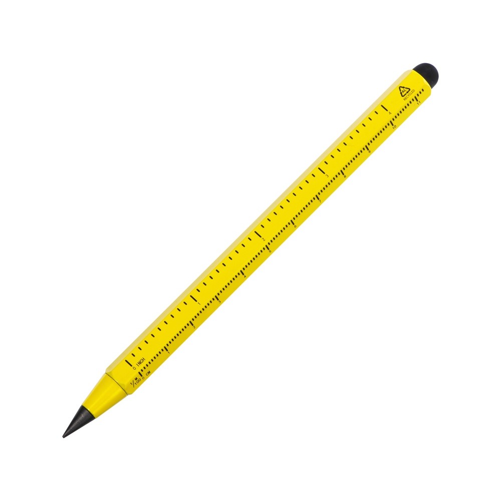 Карандаш изготовлен из переработанного алюминия. В отличие от обычных карандашей его не нужно точить, и он не пачкает руки.