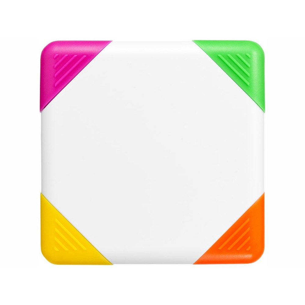 Квадратный маркер с плоским наконечником желтого, оранжевого, розового и зеленого цвета.