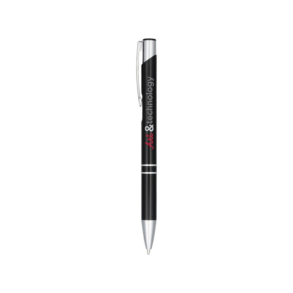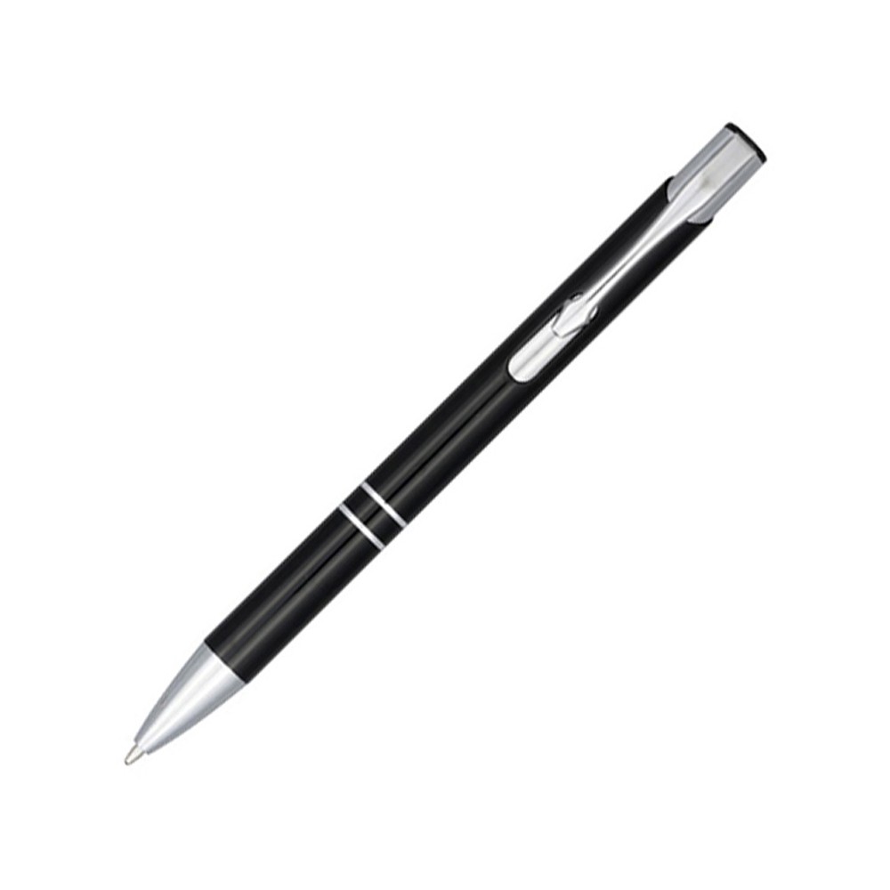 Кнопочная шариковая ручка Moneta из анодированного алюминия, синие чернила, черный