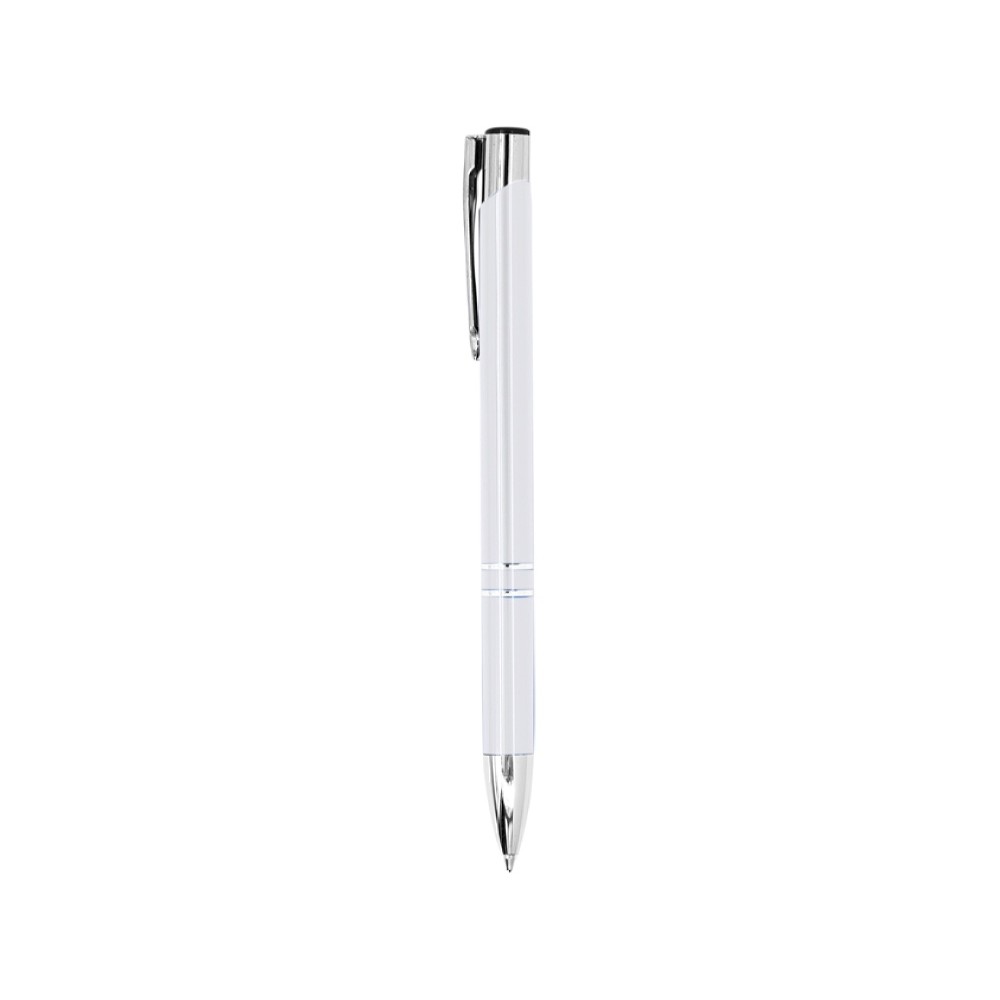 Шариковая ручка с алюминиевым корпусом и кнопкой с анодированным покрытием. Синие чернила