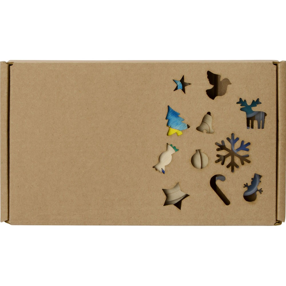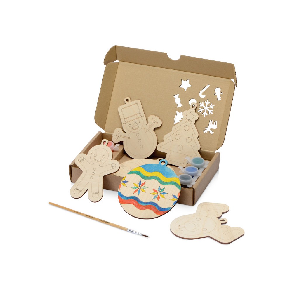 Подарочный новогодний набор для раскрашивания прекрасно подойдет как для детей, так и для взрослых, создаст праздничное настроение для всей семьи не только на вечер, но и на весь период зимних праздников. Фигурки в виде традиционных новогодних атрибутов выполнены из березовой фанеры и хорошо сочетаются с гуашью, которая идет в комплекте. Для раскрашивания приложены краски шести цветов, которые можно смешивать для создания новых оттенков, а также кисточка. Набор упакован в коробку, украшенную вырубкой.