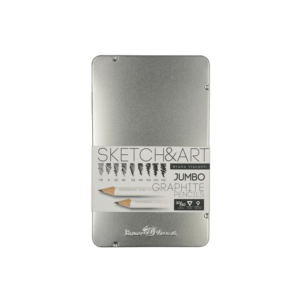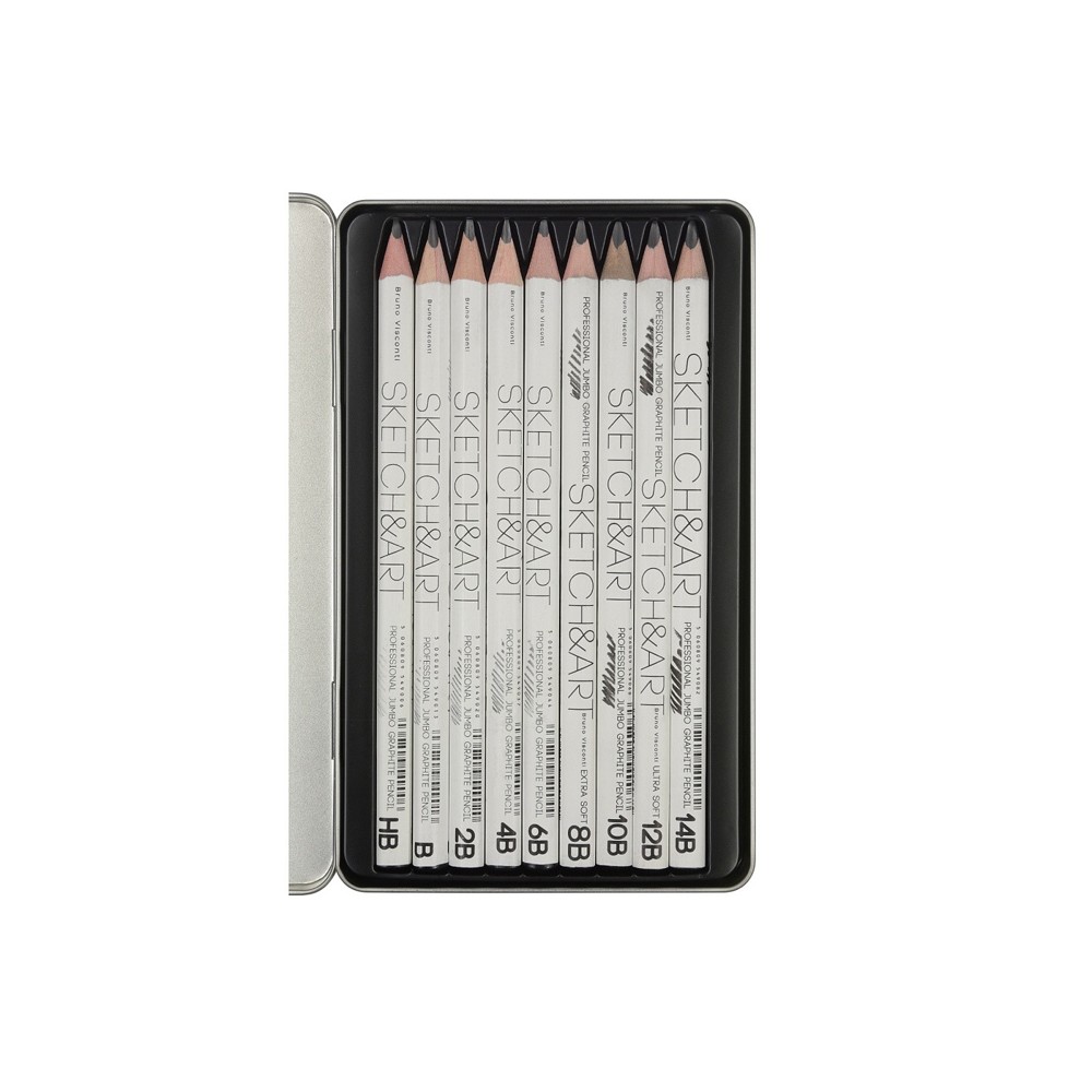 Набор чернографитовых карандашей "Sketch & Art" утолщенные,9 шт. hb-14b, металлическая коробка с ложементом