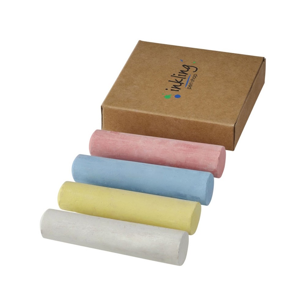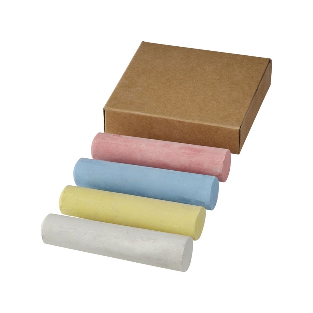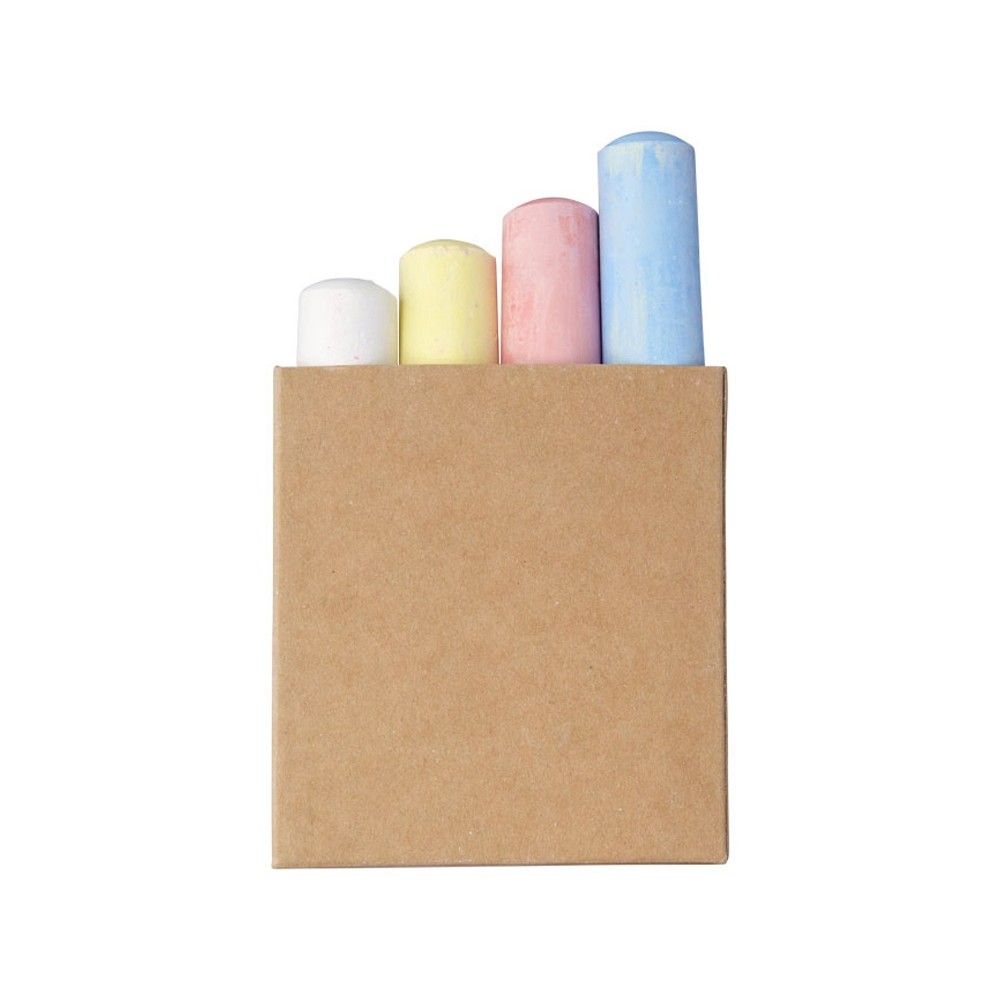 Набор мелков в натуральной коробке 4 единицы. 4 цветных мелка в бумажной коробке. Нанесение на элементах на предлагается. Бумага.