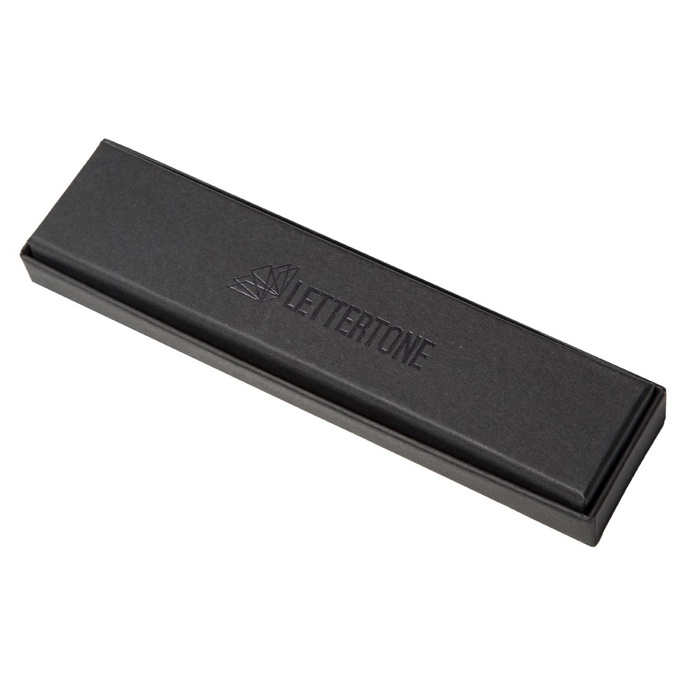 Поставляется ручка в чёрной матовой коробочке с прозрачным логотипом «Lettertone» на дне.