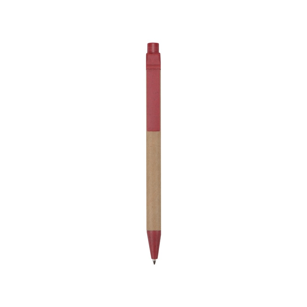 Шариковая ручка с нажимным механизмом. Удобный корпус сделан из переработанного картона. Клип, кнопка и носик ручки на 50% состоят из пшеничной соломы, на 50% — из переработанного пластика. Настоящая находка для тех, кто предпочитает использовать изделия из биоразлагаемых материалов и заботится о сохранности окружающей среды.