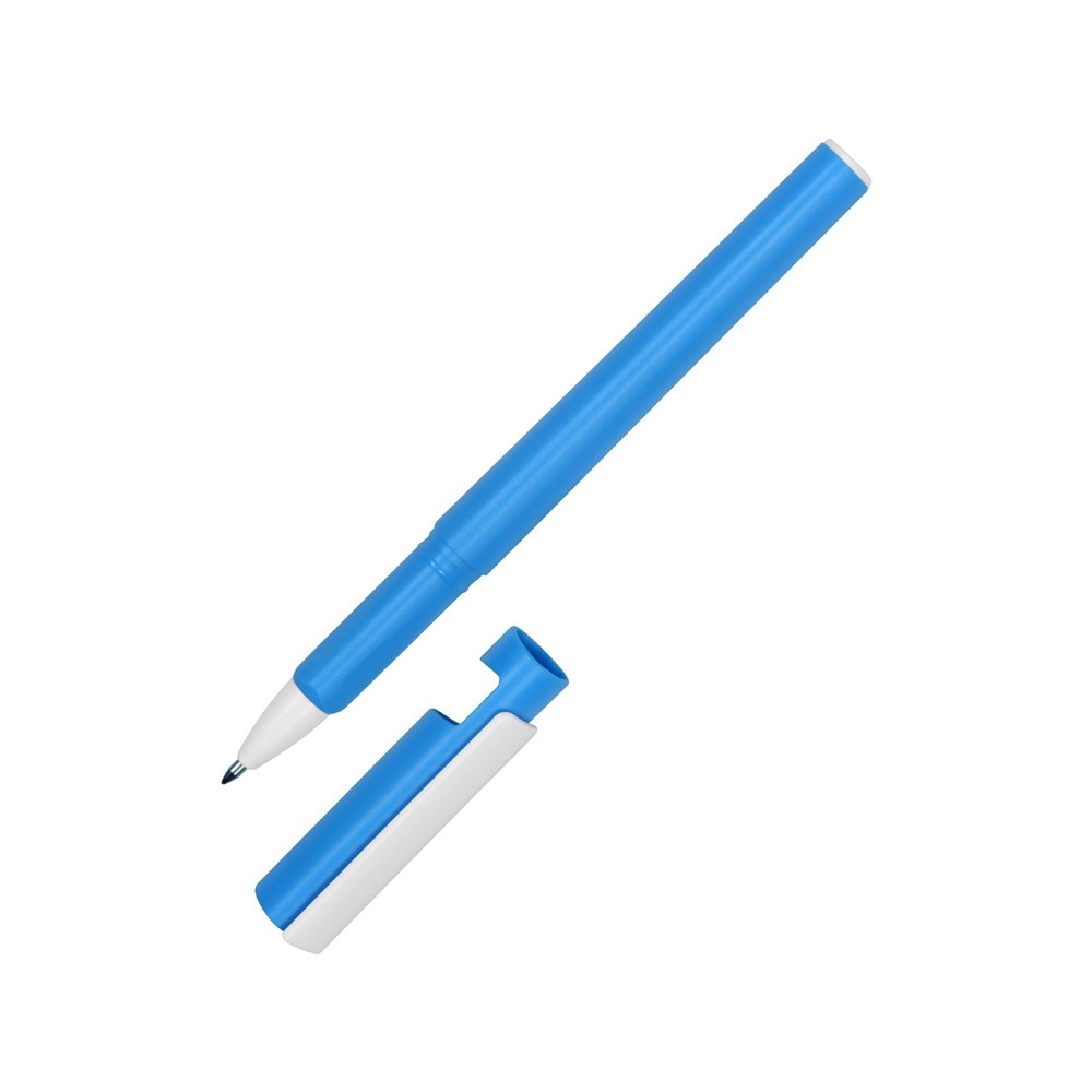На складе Код товара: 13182.10 Ручка пластиковая шариковая трехгранная «Nook» с подставкой для телефона в колпачке, голубой/белый