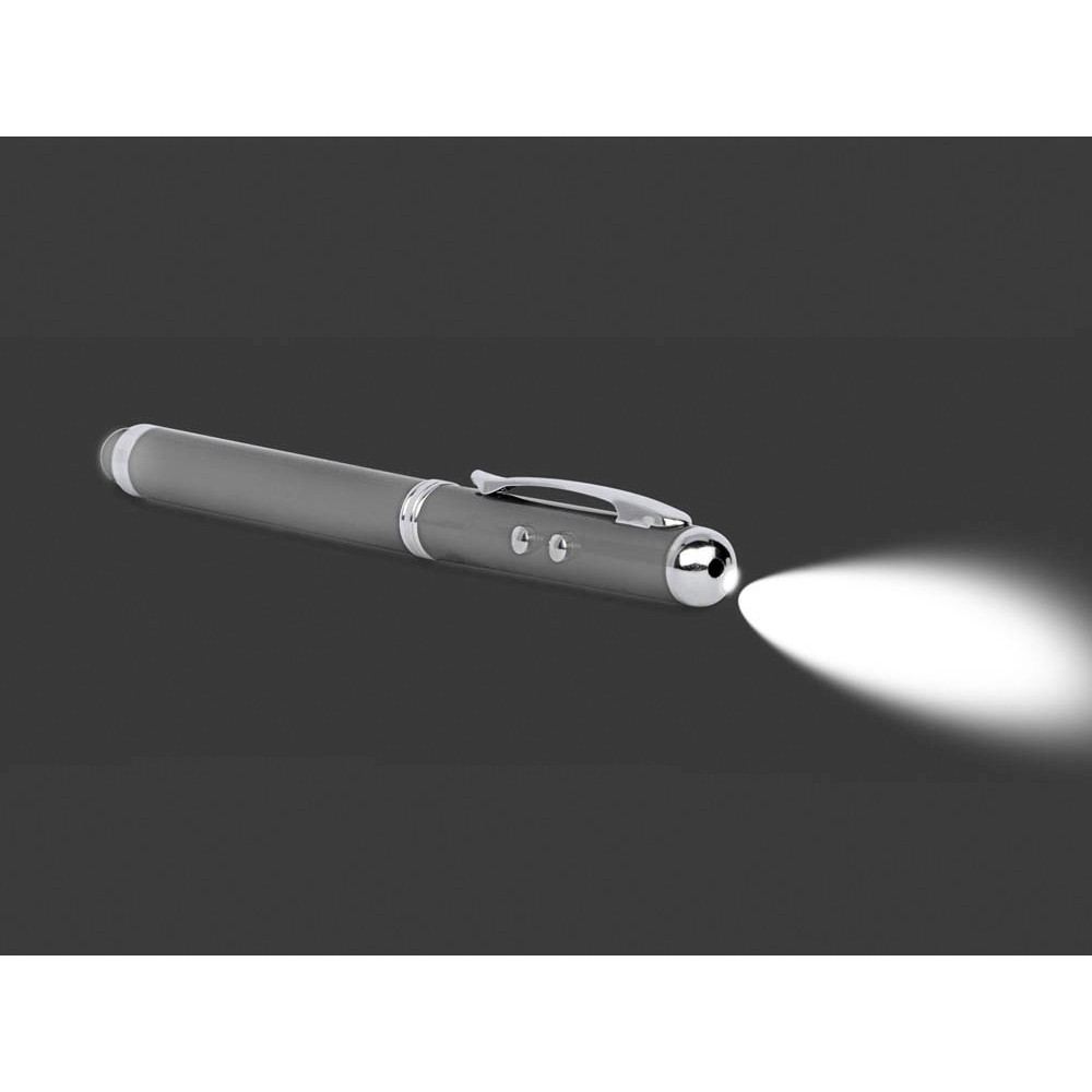 Шариковая ручка может быть не просто письменной принадлежностью. Данная модель ручки многофункциональна - это еще и удобный фонарик, лазерная указка и стилус для сенсорного экрана. Ручка представлена в разных цветах. Можно персонализировать.