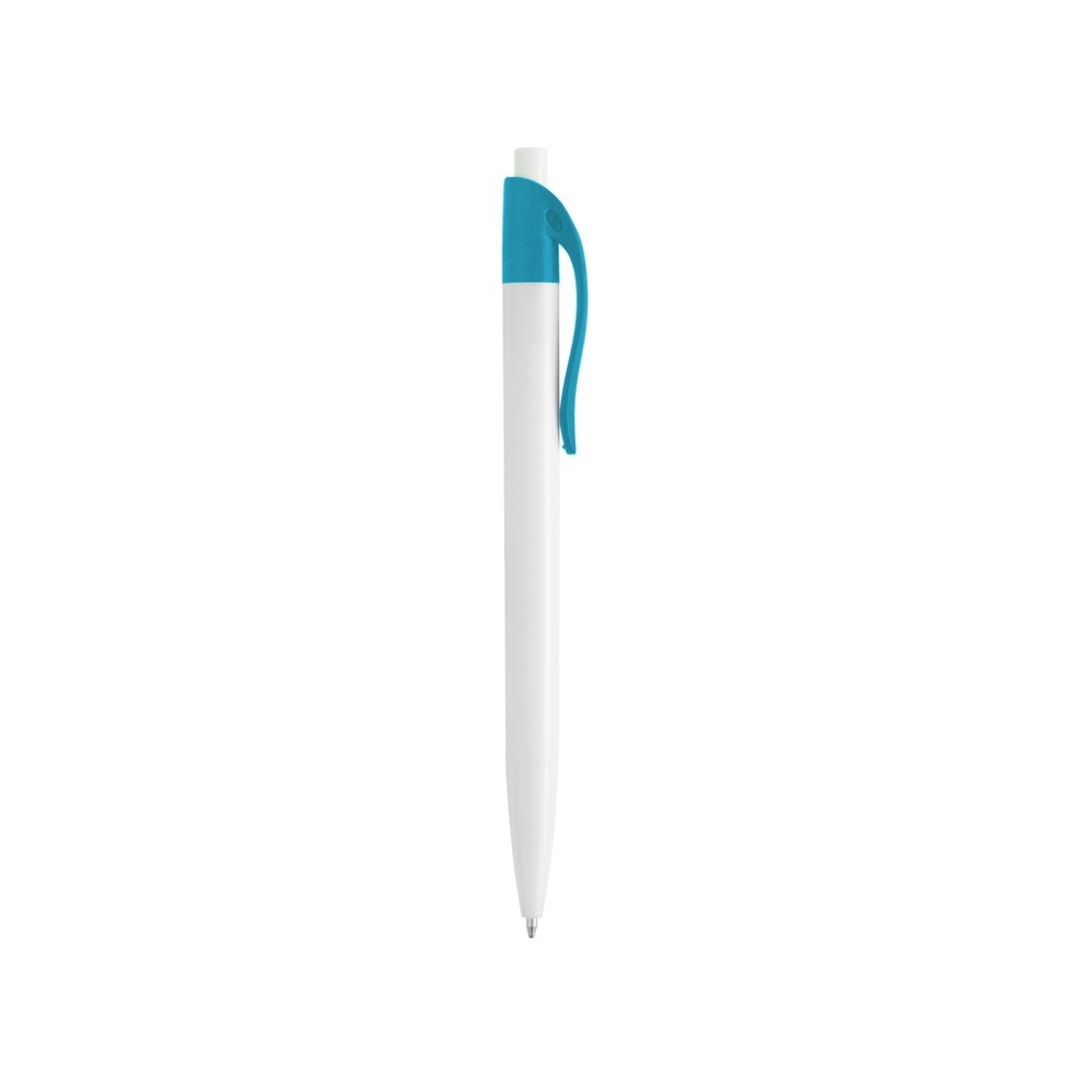 Стильная пластиковая ручка с ярким цветным клипом и белым корпусом отлично подойдет для нанесения логотипов и рекламной информации. Нажимной механизм.