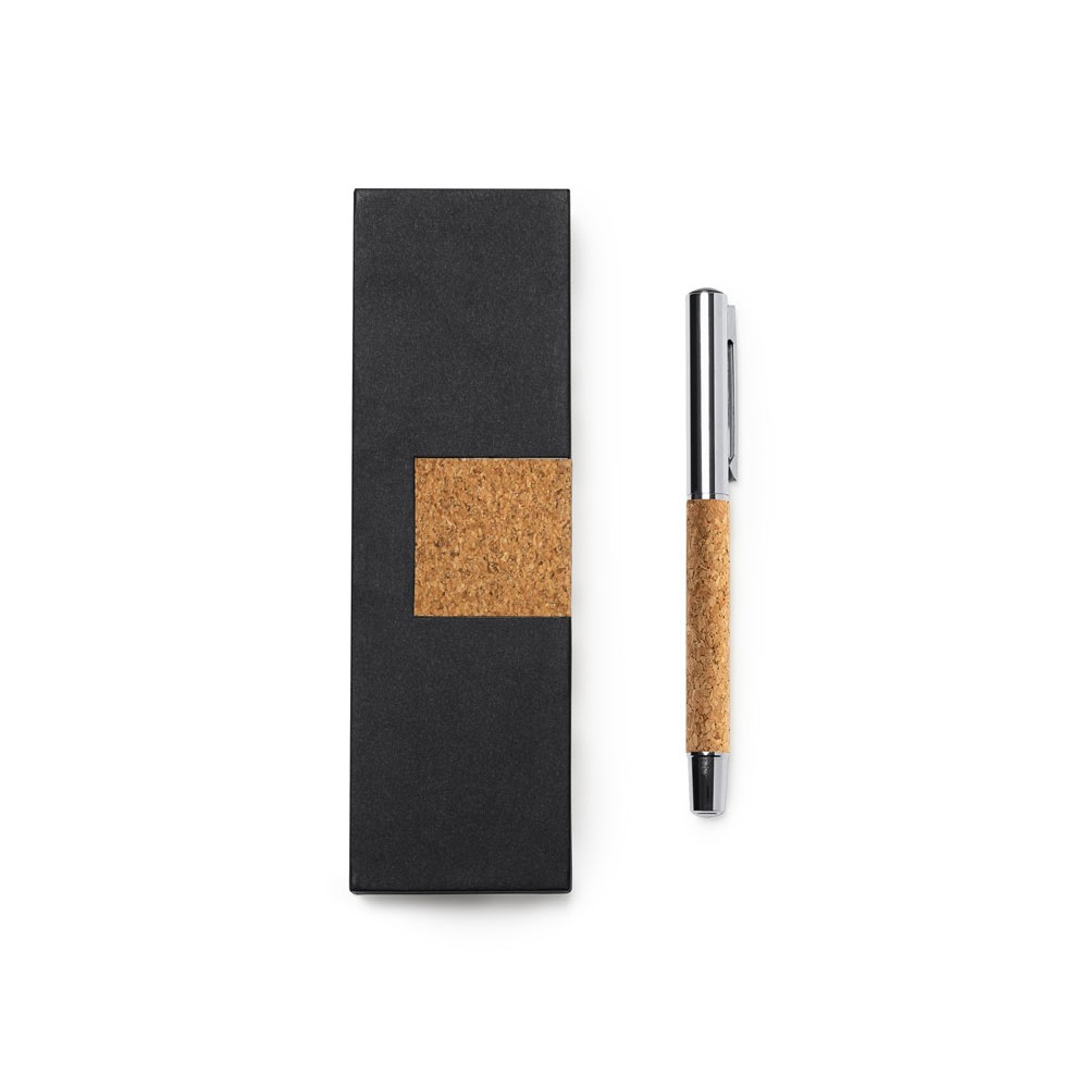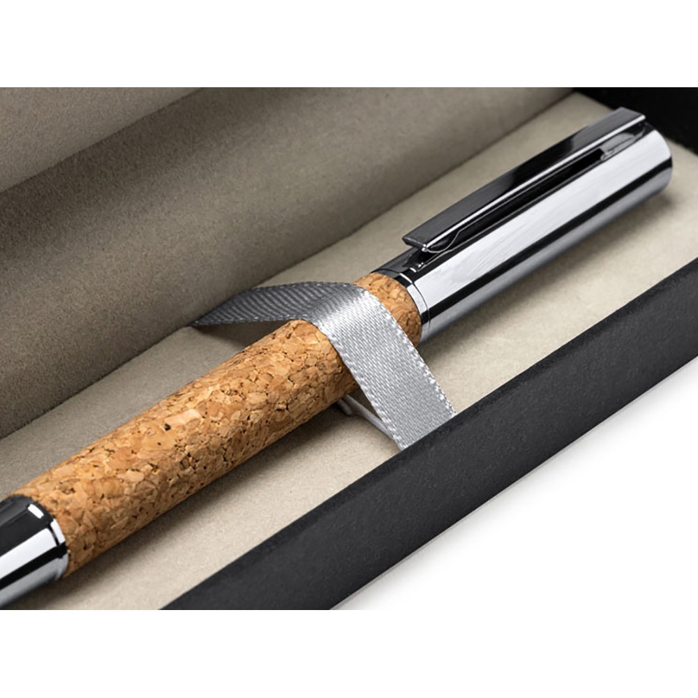 Ручка роллер из натуральной пробки и металла. Поставляется в элегантном футляре из пробки с мягкой внутренней отделкой.