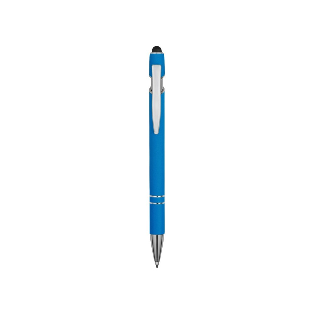 Ручка металлическая soft-touch шариковая со стилусом «Sway», голубой/серебристый