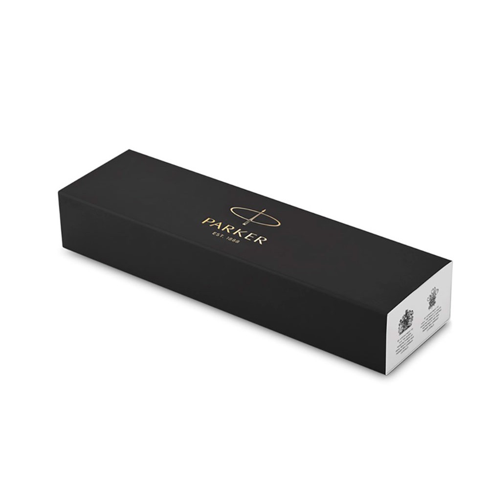 Лакированный корпус из отшлифованного металла с круговой полировкой превосходно сочетается с позолоченными декоративными элементами. Ручка упакована в подарочную коробку Parker.