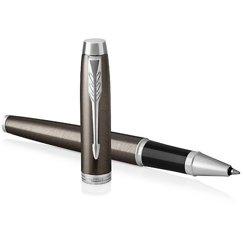 Ручка-роллер IM Core со съемным колпачком. Корпус и колпачок из латуни, покрыт лаком коричневого (шоколадного) цвета, превосходно сочетается с хромированными декоративными элементами. Зона захвата выполнена из глянцевого черного пластика. Выгравированный логотип PARKER на декоративном хромированном кольце.