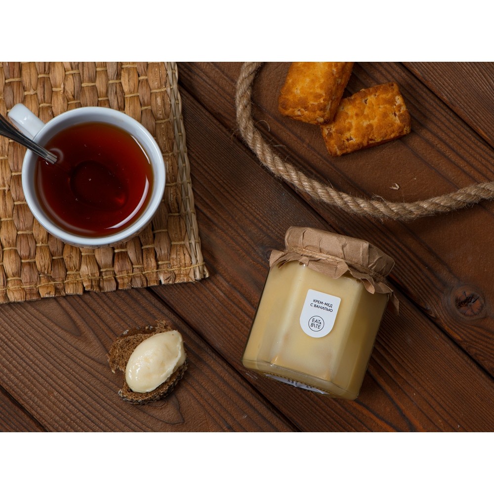 Крем-мёд это настоящий десерт для сладкоежек. Благодаря своей структуре он идеально подходит как топпинг, который легко намазать и не бояться, что он растечется по тарелке. Ваниль подчёркивает сладкий вкус крем-мёда