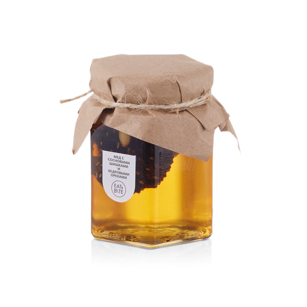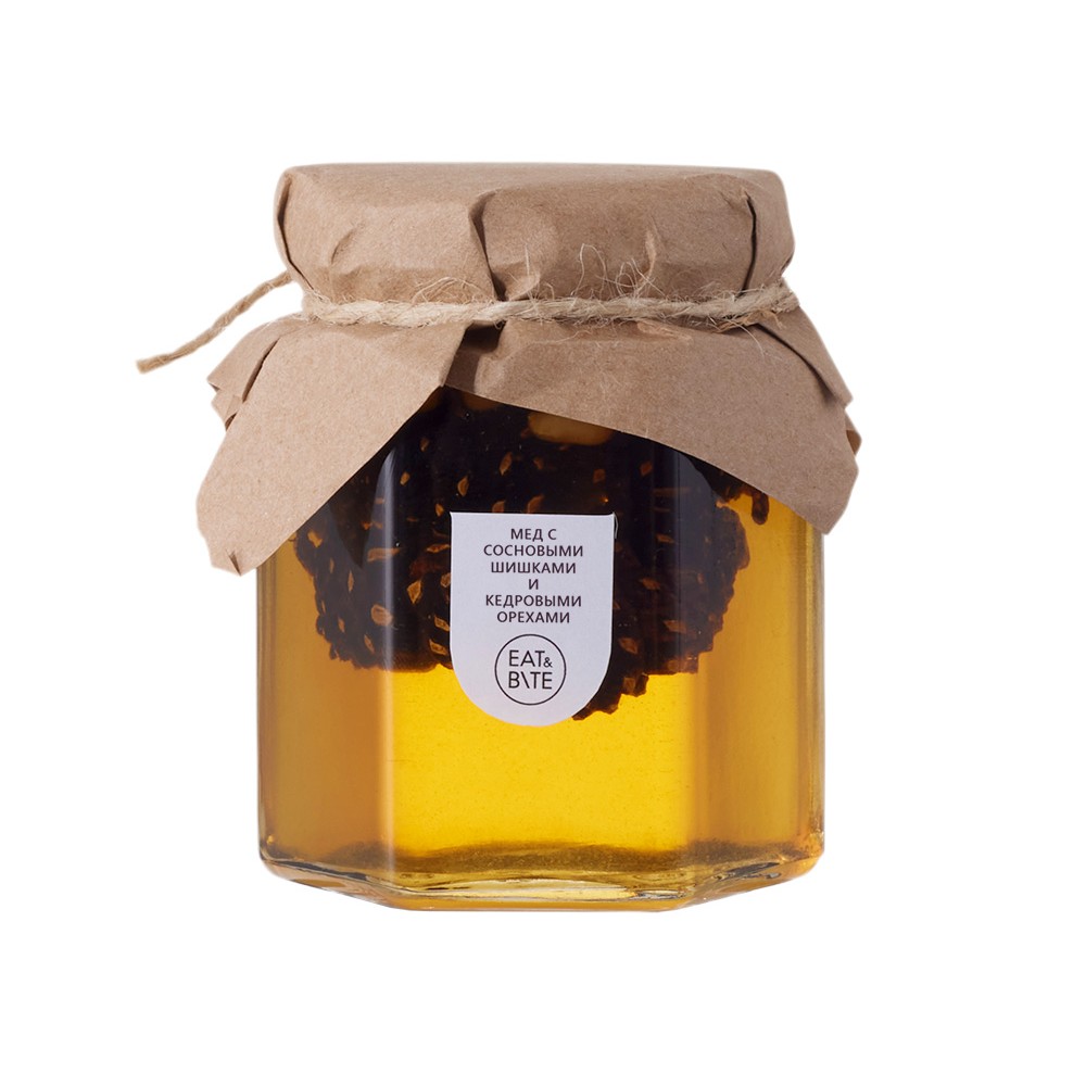 Состав мед натуральный, сосновая шишка, ядро кедрового ореха