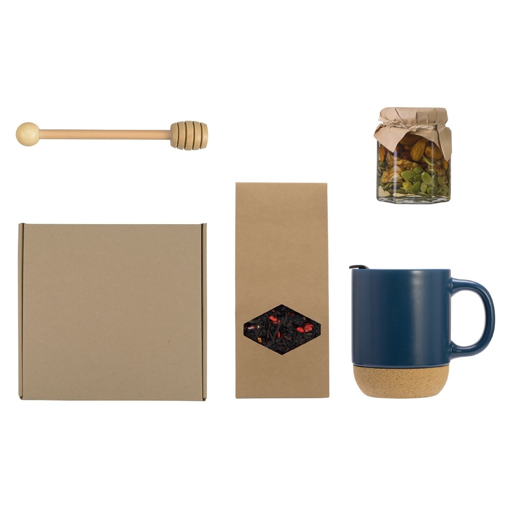 • Подарочный набор с кружкой, медом и ложкой для меда, синий